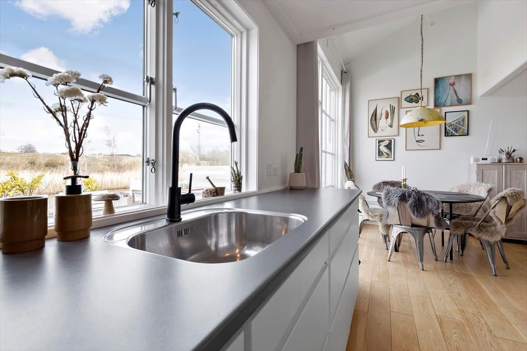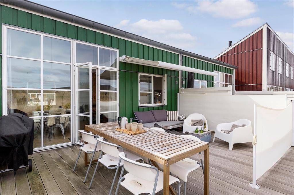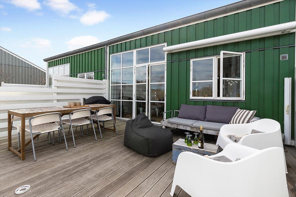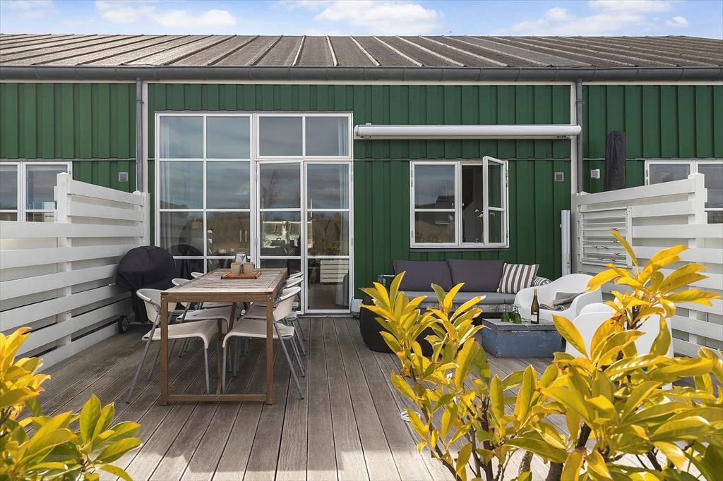 Udenfor venter en stor træterrasse med havemøbler, liggestole, parasol og grill – ideel til måltider under åben himmel eller afslapning med en god bog. Den flisebelagte gårdhave giver ekstra læ og privatliv. Feriebyen Øer Maritime Ferieby tilbyder et væld af aktiviteter: indendørs swimmingpool, multihal med badminton og bordtennis, samt udendørs minigolf, tennis, petanque, beachvolley og fodbold. Der er også legeplads, hoppeborg og et kæmpestort skakspil for de yngste. For vandentusiaster er der mulighed for at leje SUP-boards, kanoer eller bådplads ved henvendelse til havnefogeden.