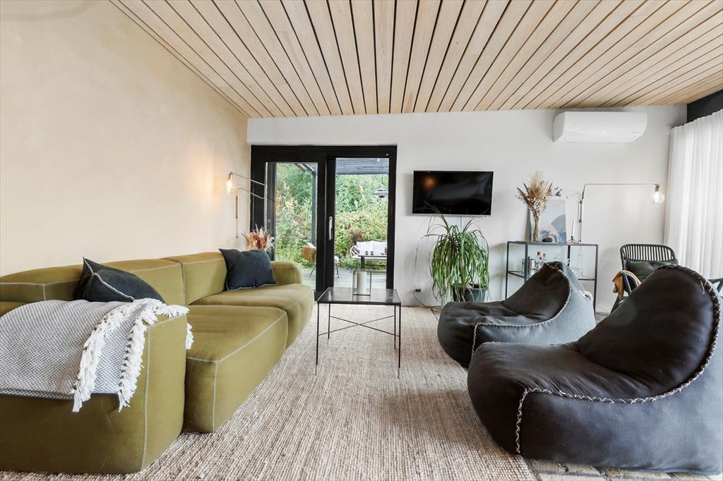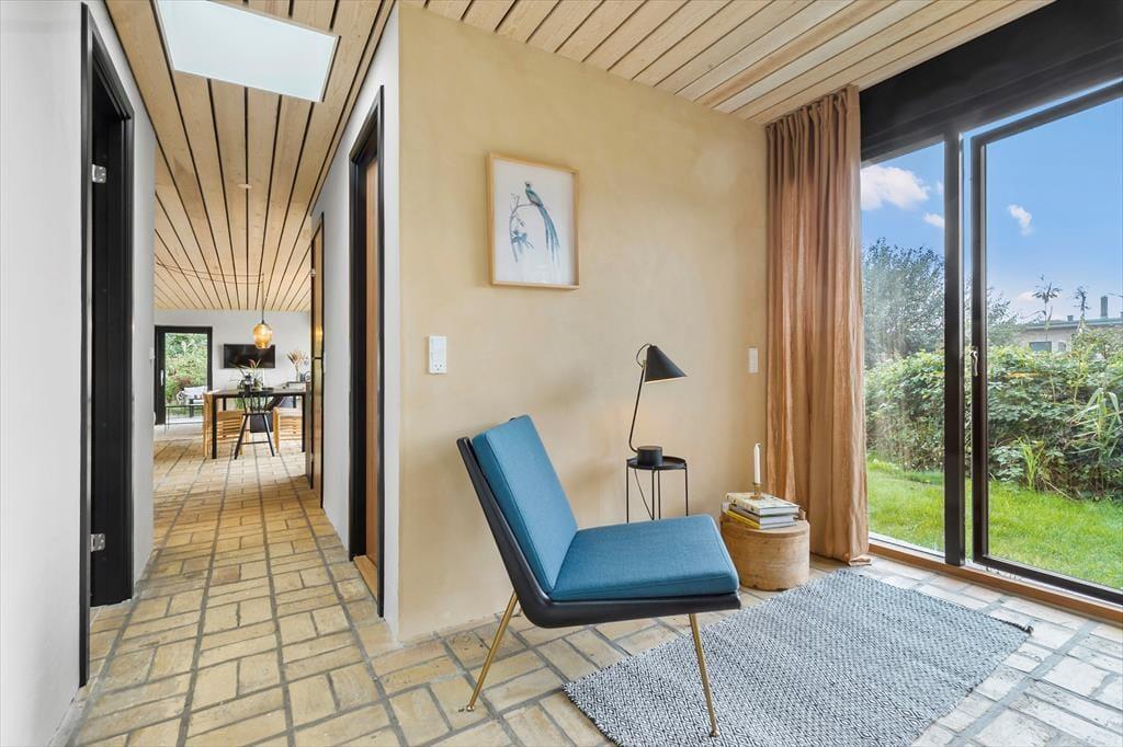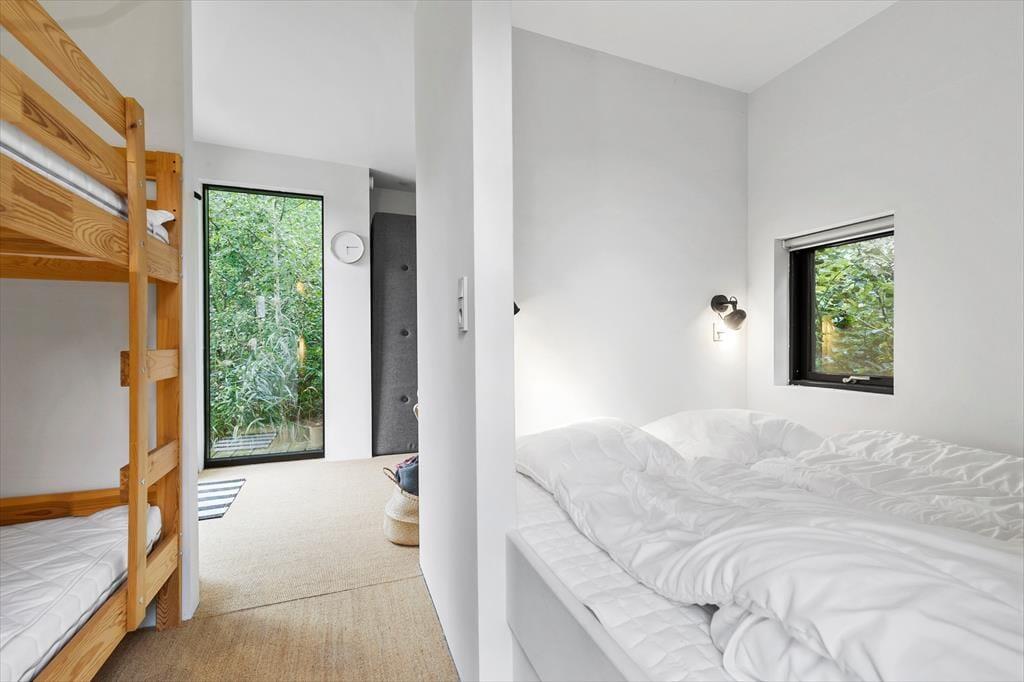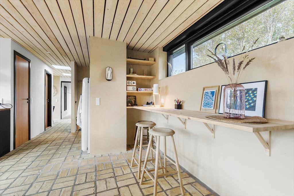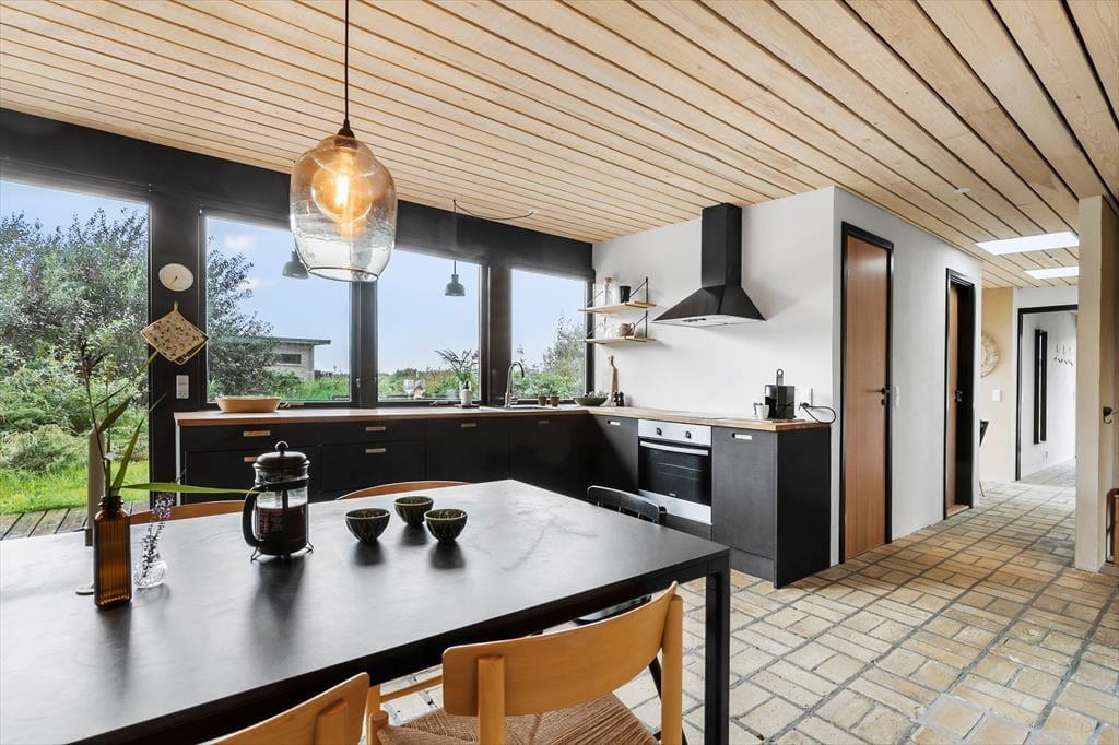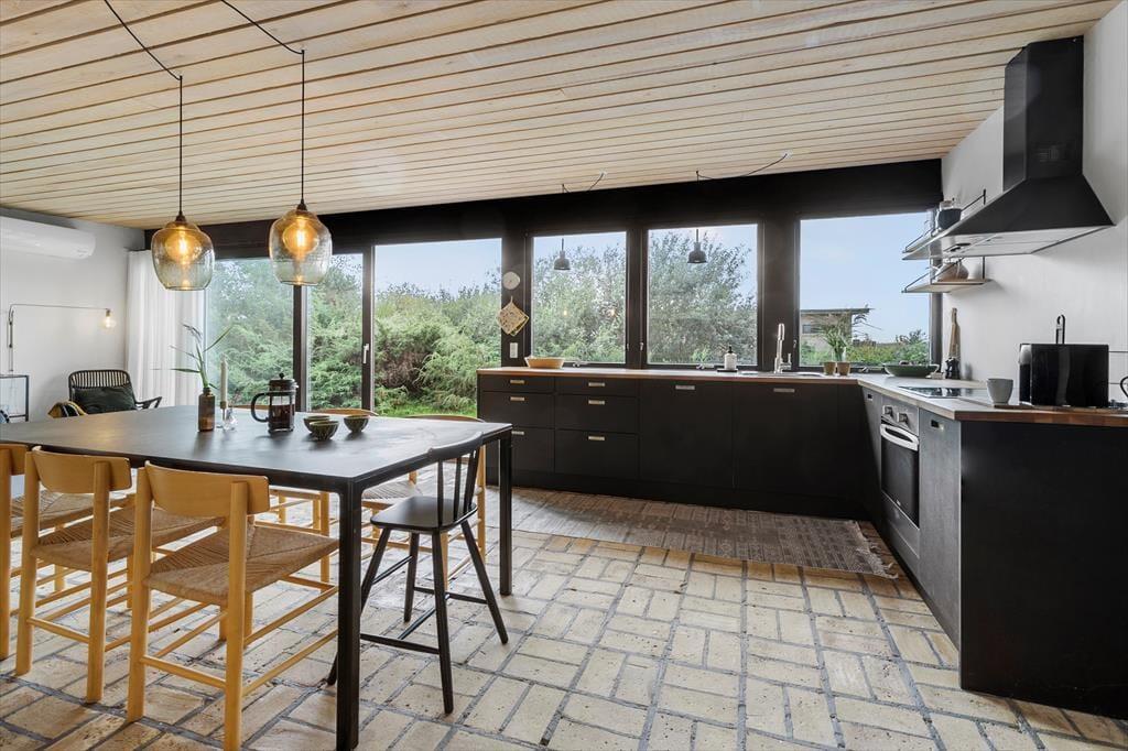 De åbne rum med store vinduer skaber en lys og luftig atmosfære, der giver dig fornemmelsen af at være tæt på naturen, mens du nyder alle moderne bekvemmeligheder. Det åbne køkken alrum giver dig mulighed for at tilberede lækre måltider og samtidig deltage i hyggelige samtaler eller spil med børnene.