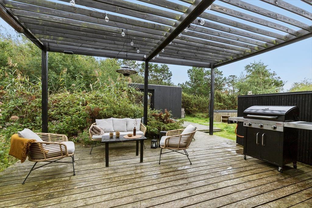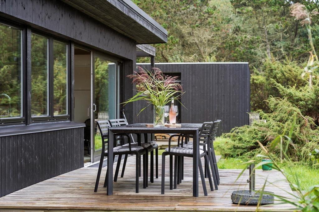 Den store terrasse er det perfekte sted at nyde morgenkaffen eller slappe af med en god bog, mens du tager naturens skønhed omkring dig ind i alle sanser.