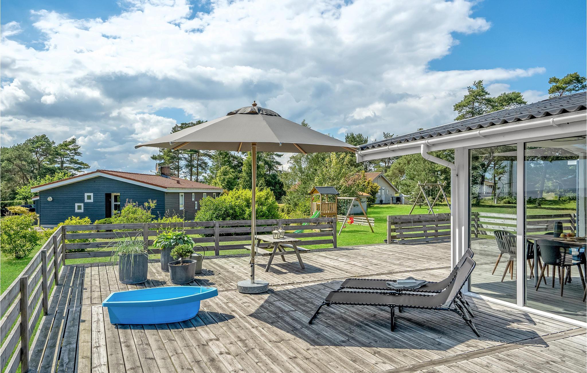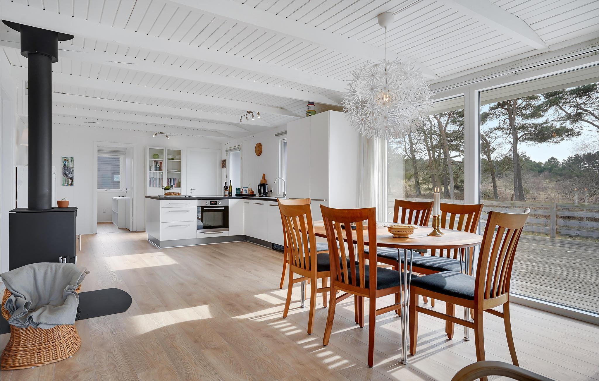 Huset har store træterrasser, hvor I kan nyde dejlige timer udendørs. Tænd op i grillen, slap af i de komfortable havemøbler og se børnene lege på den store naturgrund, hvor de blandt andet kan få mange timer til at gå med gyngestativet. Der er kun en kort gåtur fra feriehuset til en smuk sandstrand. I er også tæt på et mountainbike spor af international kaliber.