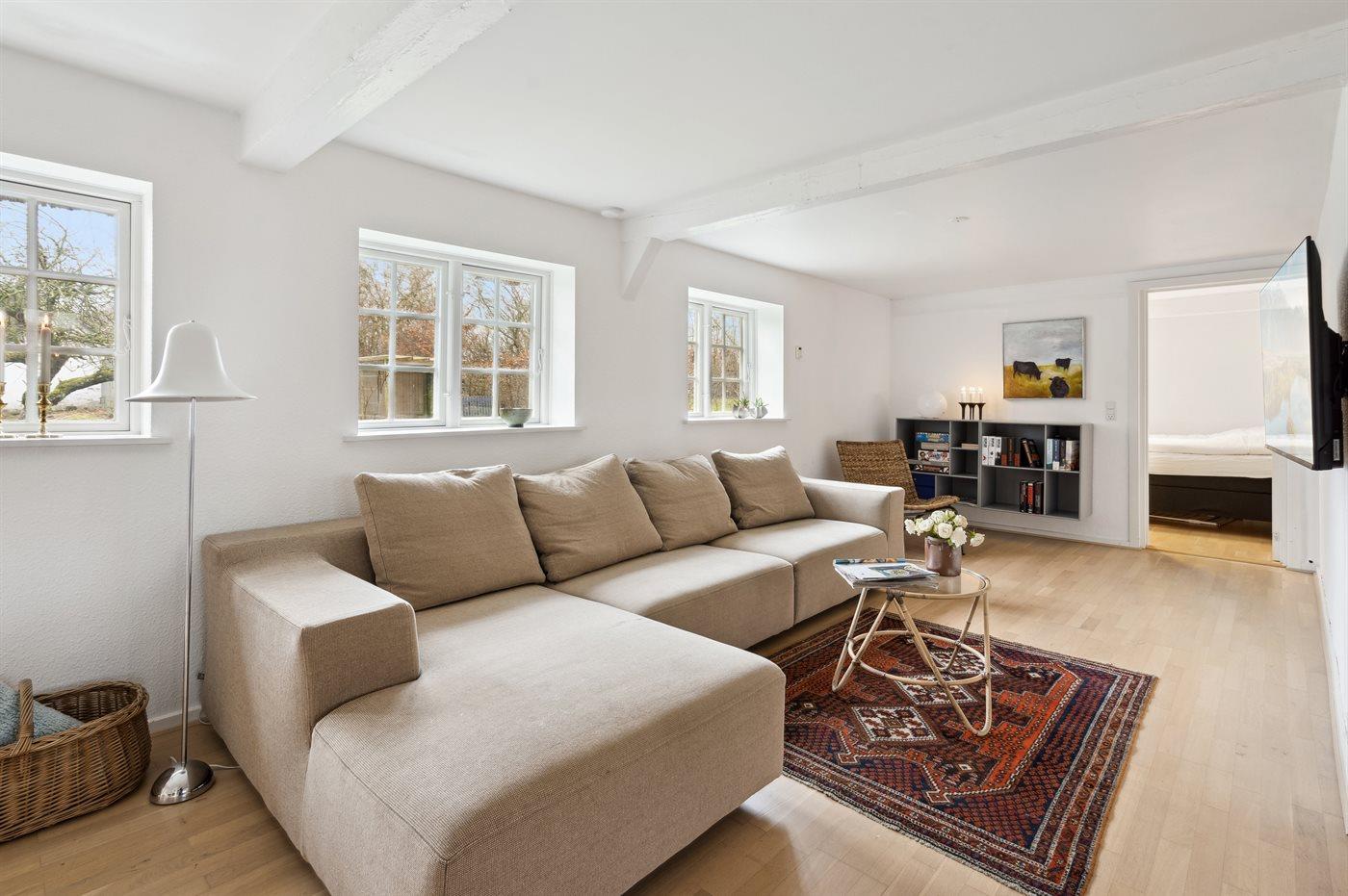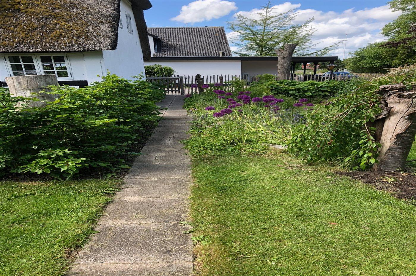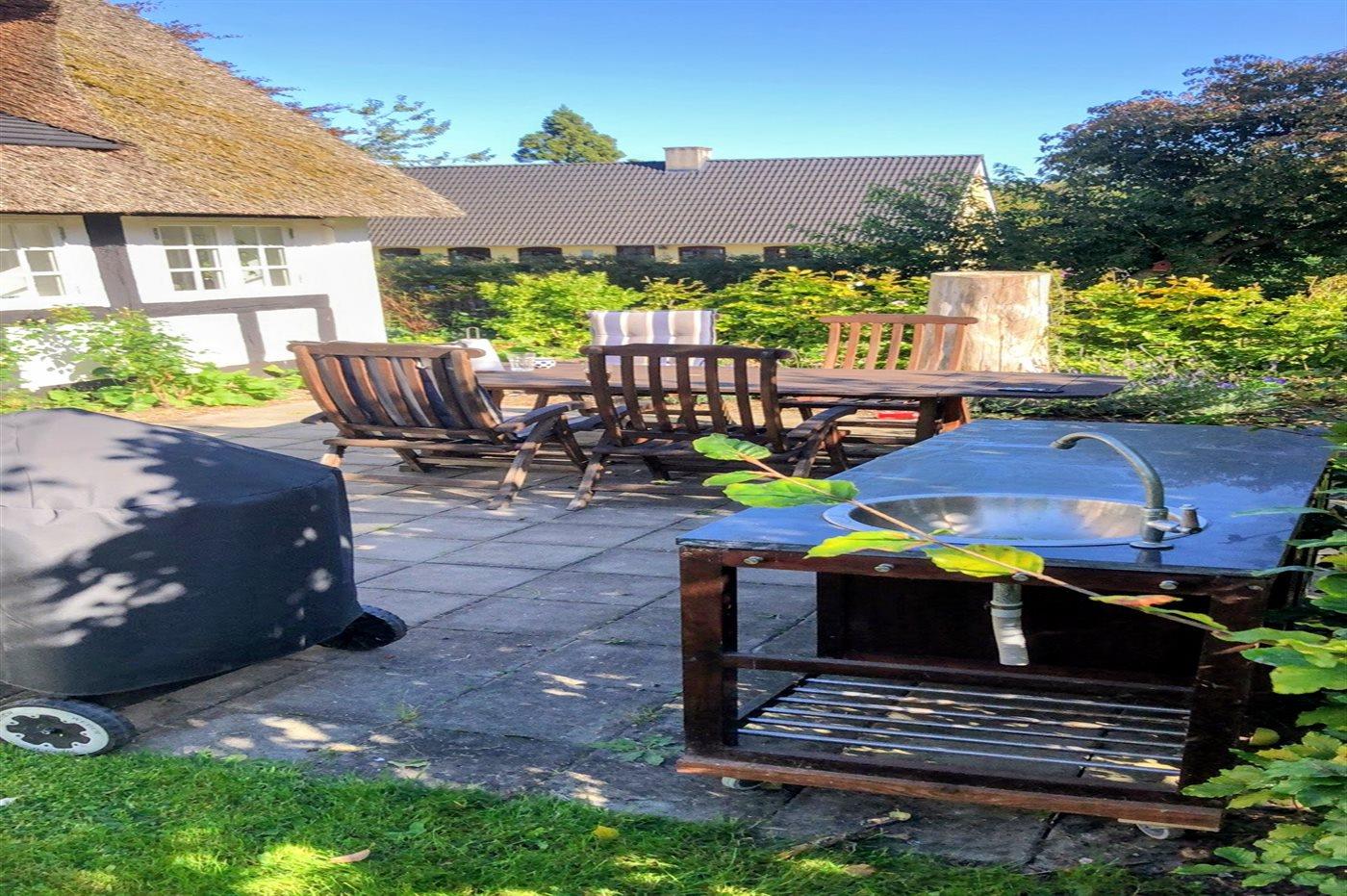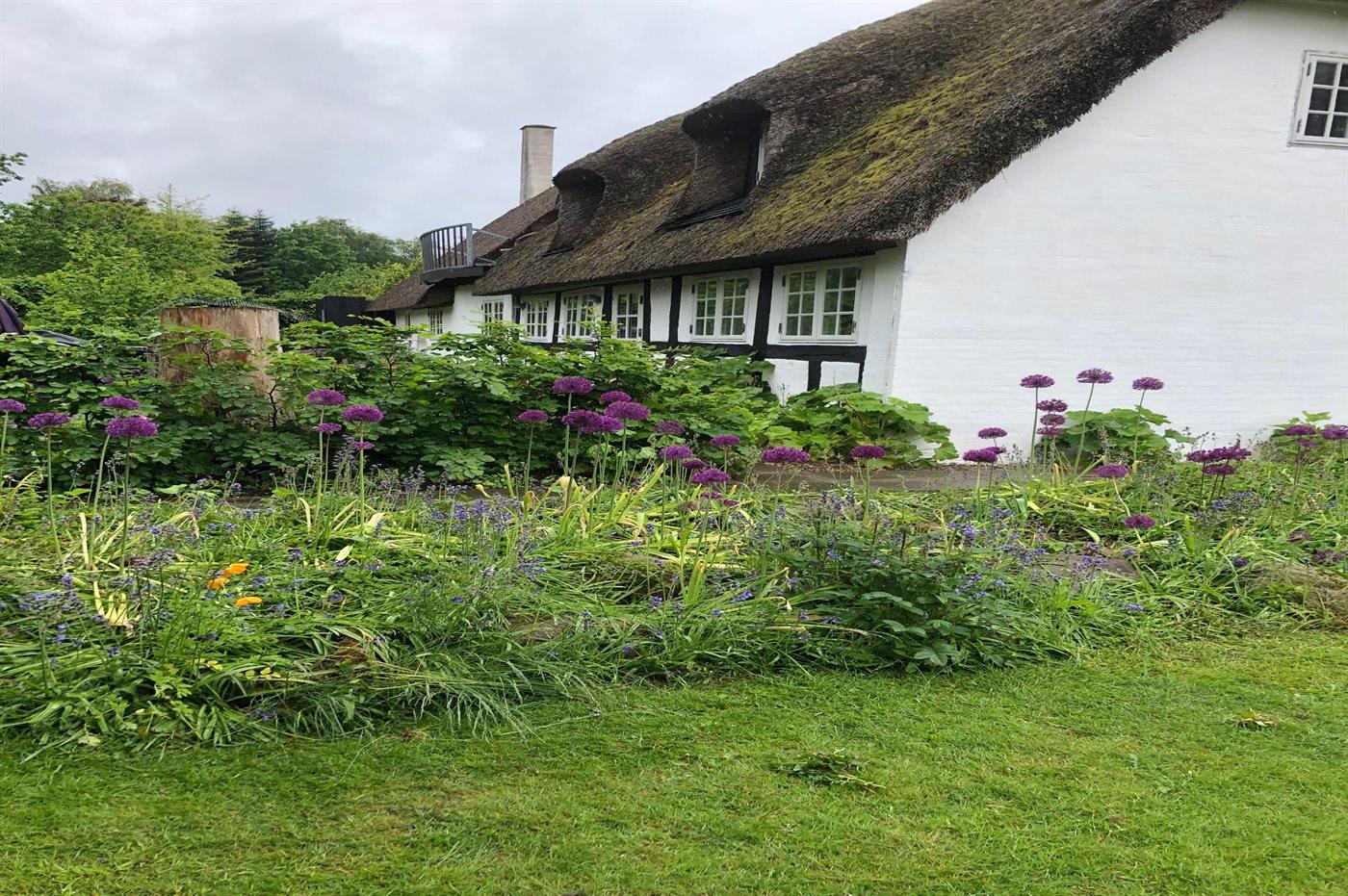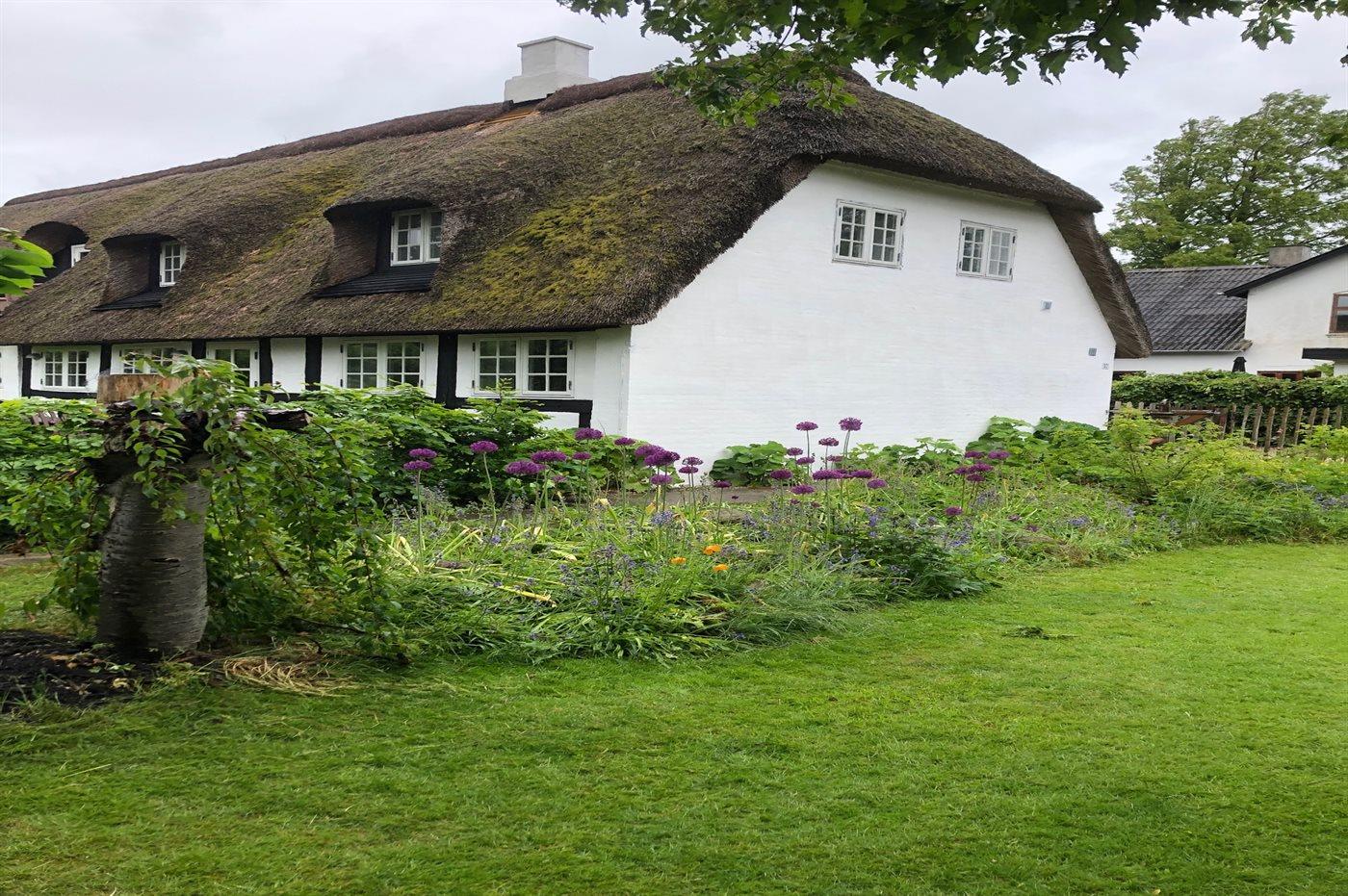 Charmerende totalrenoveret stråtækt sommerhus nær Ørby Strand med stor have og moderne komfort.