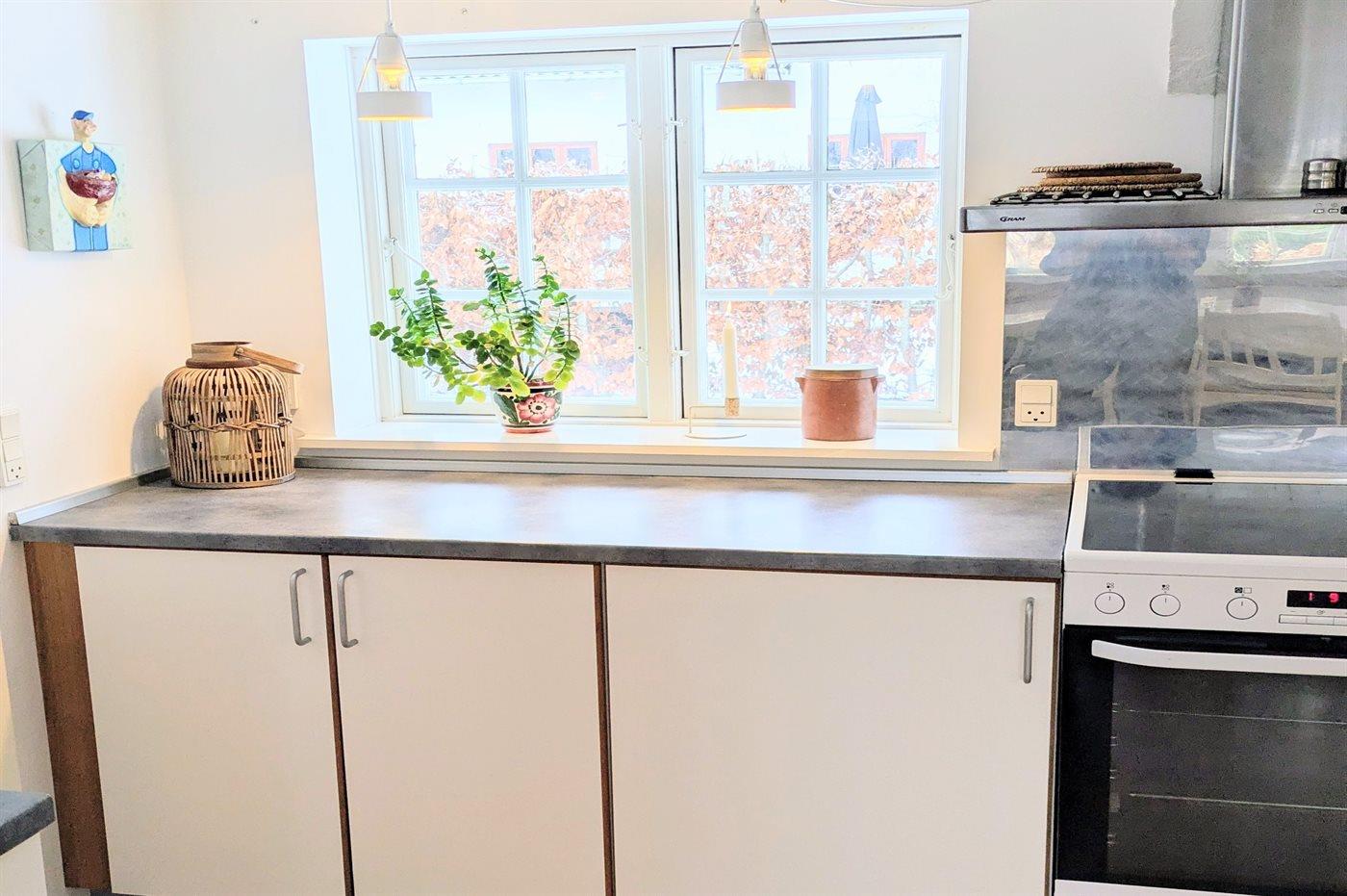 I stueetagen finder du en rummelig entré, et badeværelse med bruseniche, et stort køkken med spiseplads, en hyggelig stue med synlige bjælker og brændeovn samt et soveværelse. På første sal er der tre gode værelser og en repos med læsehjørne, tv og spillekonsol. Der er en stor have med god plads til boldspil og leg. På terrassen er der både grill og havemøbler til rådighed. Der findes udendørs bruser. Desuden Hvis man vil til vandet kan man enten tage til Ørby Strand eller Haderslev Fjord.