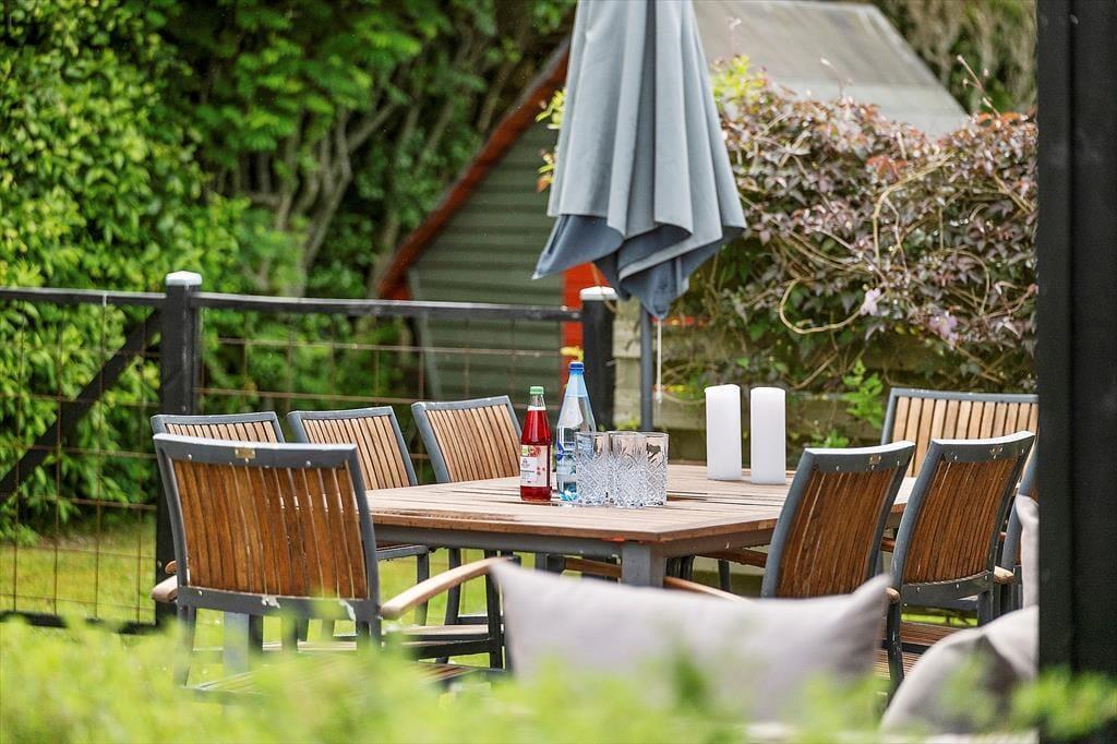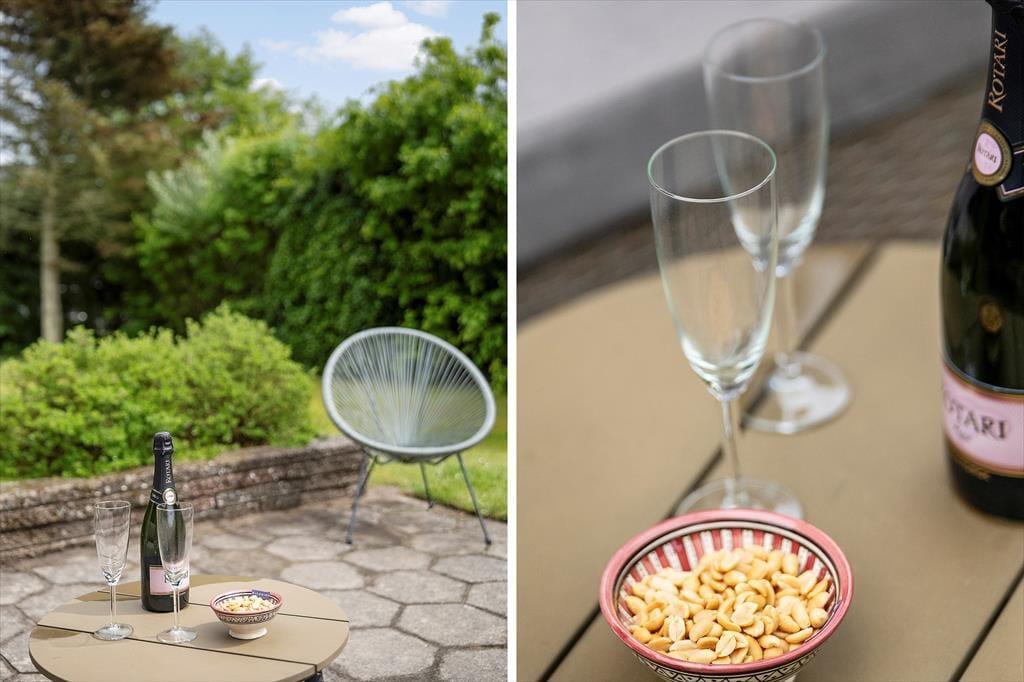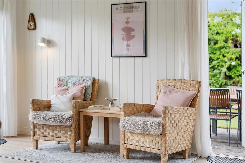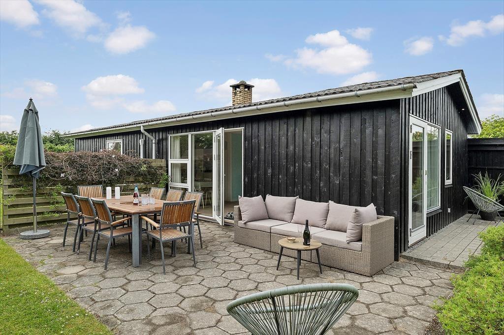I den grønne og solrige have folder udelivet sig ud fra morgen til aften. Her er masser af plads til, at både børn og voksne kan boltre sig – hvad enten det er med boldspil på græsset eller afslapning i havemøblerne. Den sydvendte fliseterrasse er et oplagt samlingspunkt, hvor du kan nyde dagens måltider under åben himmel, tage en stille stund i solen eller bare lade dig glide ind i feriehumøret med en kold drik og udsigt til blå himmel. Når aftenen falder på, og du tænder op i grillen, er det nemt at mærke, at ferien for alvor er i gang. Alt omkring huset emmer af afslappet feriestemning og frihed til bare at være.