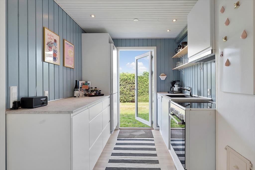 Når du træder ind i sommerhuset på Hedegaarde Nord 18, mærker du straks den særlige stemning, der kendetegner et rigtigt klassisk sommerhus. Indretningen er hyggelig og hjemlig med lyse materialer, komfortable møbler og små detaljer, der gør det nemt at finde ferieroen. Stuen indbyder til afslapning med en god bog eller hyggelige brætspil, og der er god plads til samvær med dem, du holder af. Køkkenet ligger i sin egen afdeling og er lyst og funktionelt – her er alt det, du har brug for til feriens måltider, hvad enten det er morgenkaffen, en hurtig frokost eller en hjemmelavet middag. Her får du en feriebase, hvor stemningen er varm, og dagene er dine til at nyde i eget tempo.