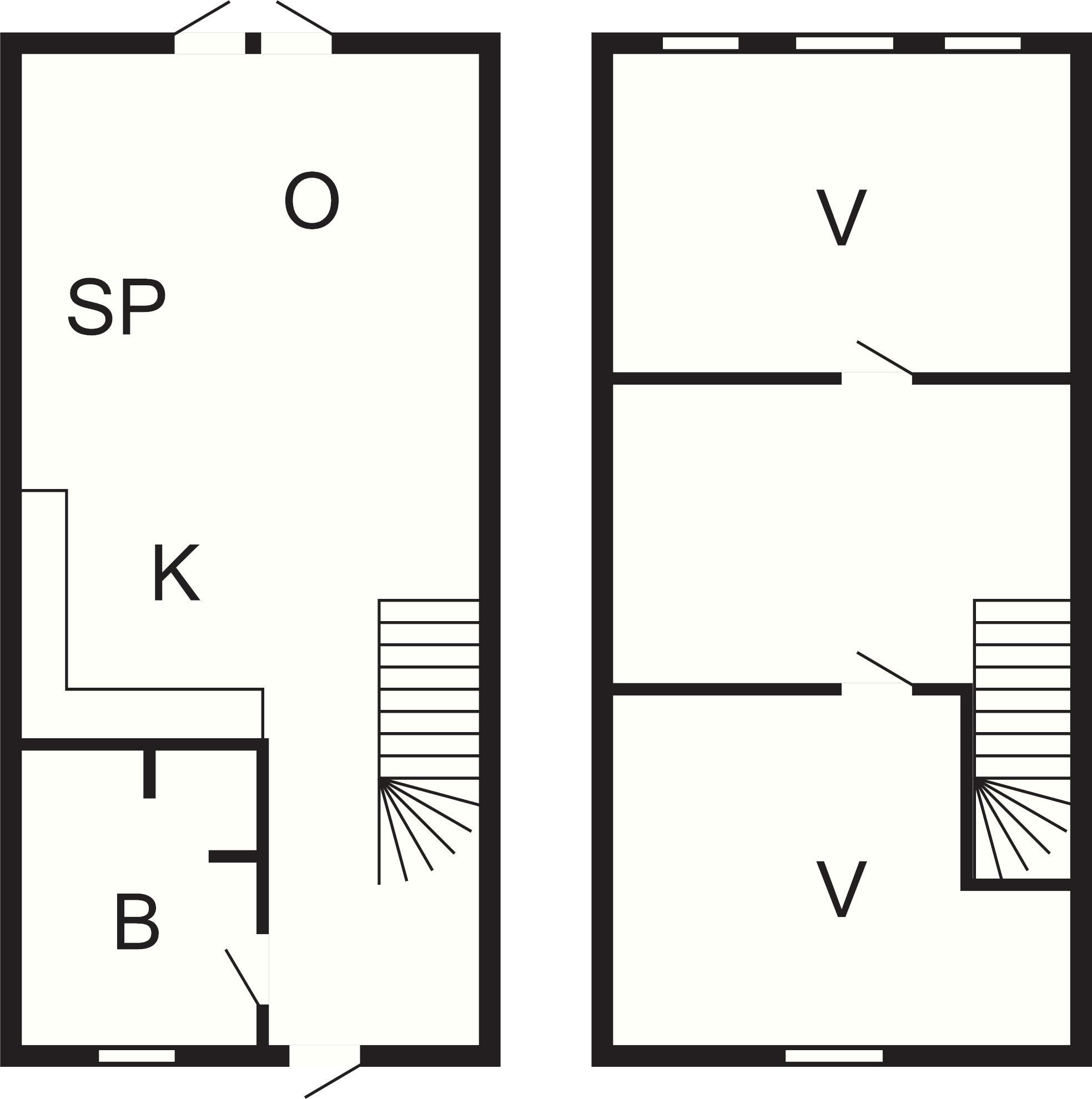 På 1. sal er der 2 soveværelser med 3/4 seng samt et repos med 3/4 seng og fra et værelse er der udgang til balkon med udsig til vandet