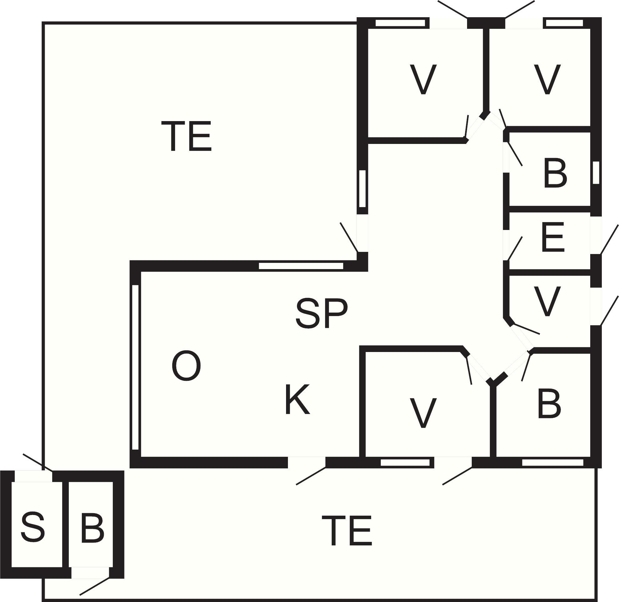 4 Soveværelser: (1DS)+(1DS)+(1DS)+(2K)