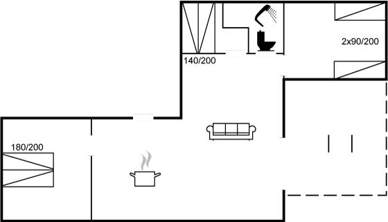 Der er i alt 3 soveværelser. Sovepladserne fordeler sig på: 4 sovepladser i dobbeltsenge. 2 sovepladser i enkeltsenge.