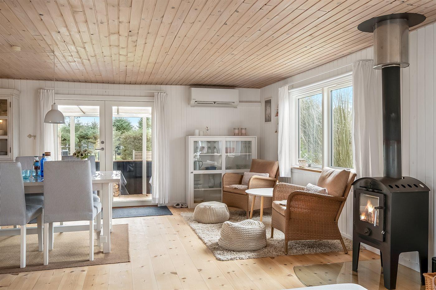 Hyggeligt sommerhus med en dejlig overdækket terrasse, hvor I kan nyde lange, afslappede dage og lune sommeraftener. I haven finder I et hyggeligt bålsted, som indbyder til snobrød, gode samtaler og ægte sommerhusstemning under åben himmel.