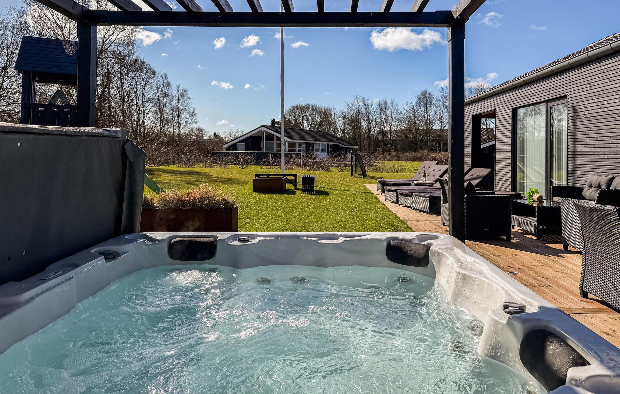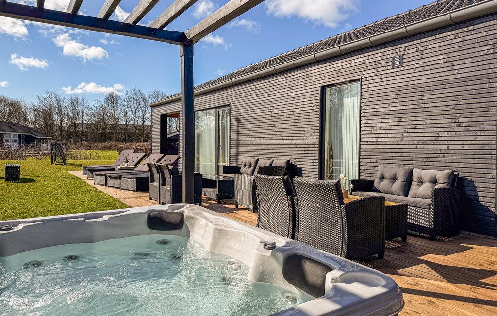Moderne feriehus i Øster Hurup med wellness, legeplads og tæt på familievenlig strand.