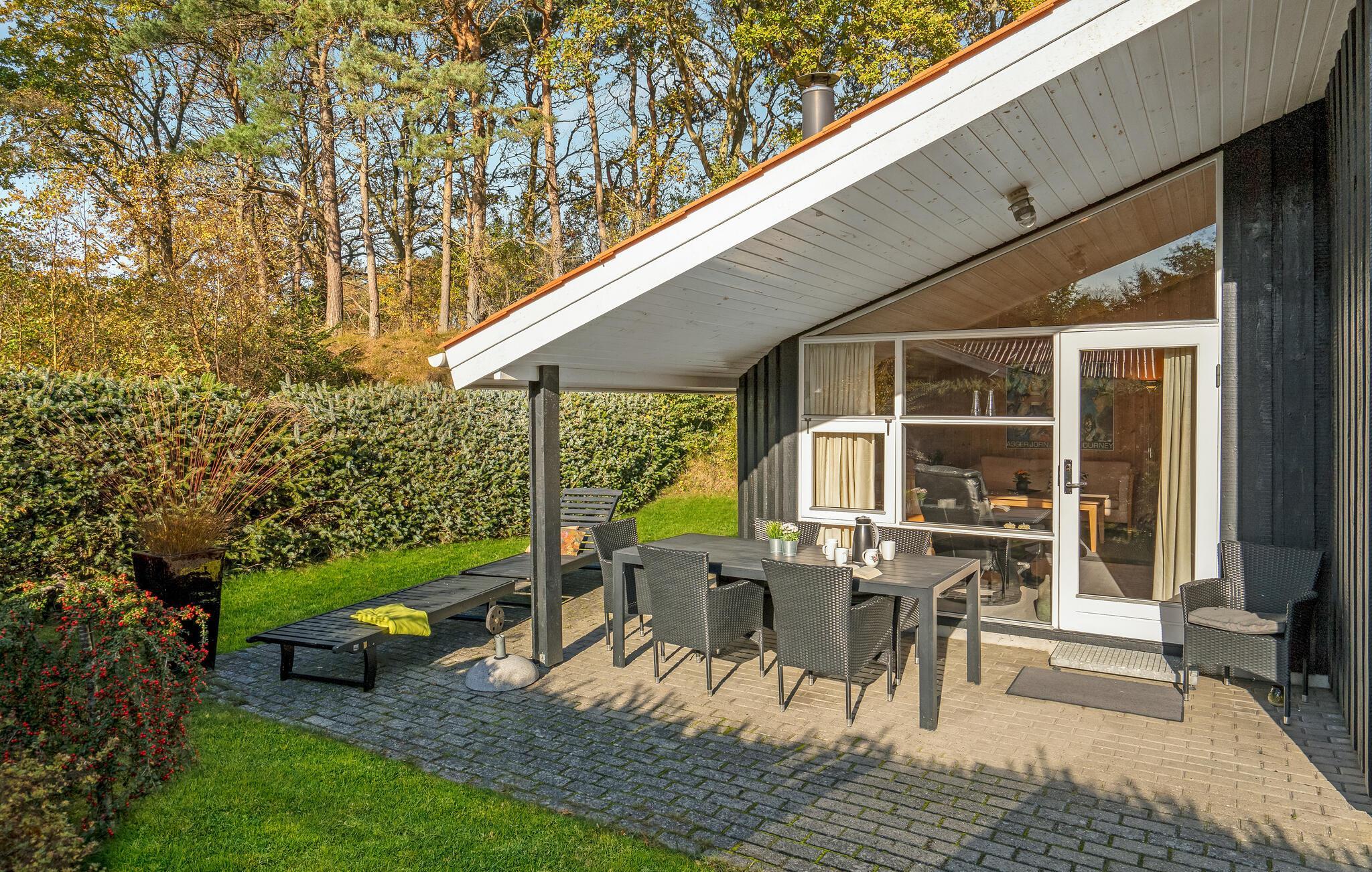 Dette indbydende sommerhus byder op til 8 gæster velkommen. Det er lyst og komfortabelt indrettet. Slap af i saunaen, spabadet eller på sofaen foran brændeovnen. I den store have er der masser af plads til at slappe af og lege. Til de mindste er der en gynge og en sandkasse, og til de voksne er der en grill til rådighed, så I kan tilberede lækre feriemåltider. På den delvist overdækkede terrasse kan I spise morgenmad og senere afslutte dagen med et glas vin.