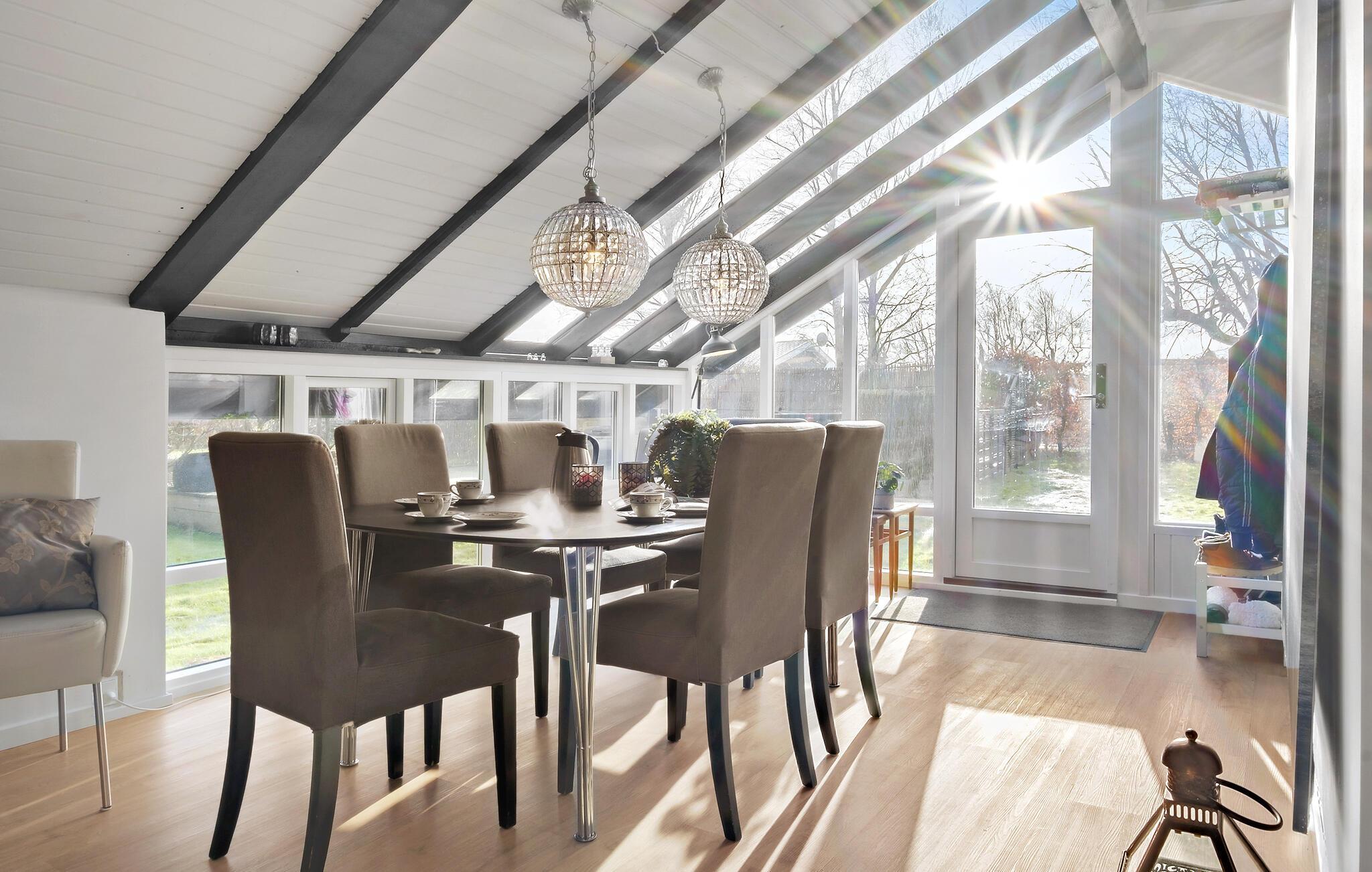 Lad turen gå til Øster Hurup, hvor der venter jer en afslappende ferie med familien i dette smukke hus, som fremstår særdeles charmerende med sine mørke træbjælker og åbne planløsning. Det naturlige lys siver ind gennem de store vinduespartier i stuen, hvor I kan glæde jer til mange hyggelige stunder i de behagelige møbler ved brændeovnen. I det åbne, veludstyrede køkkener kan I piske familiens livretter sammen og nyde dem ved spisebordet med udsigt til haven.