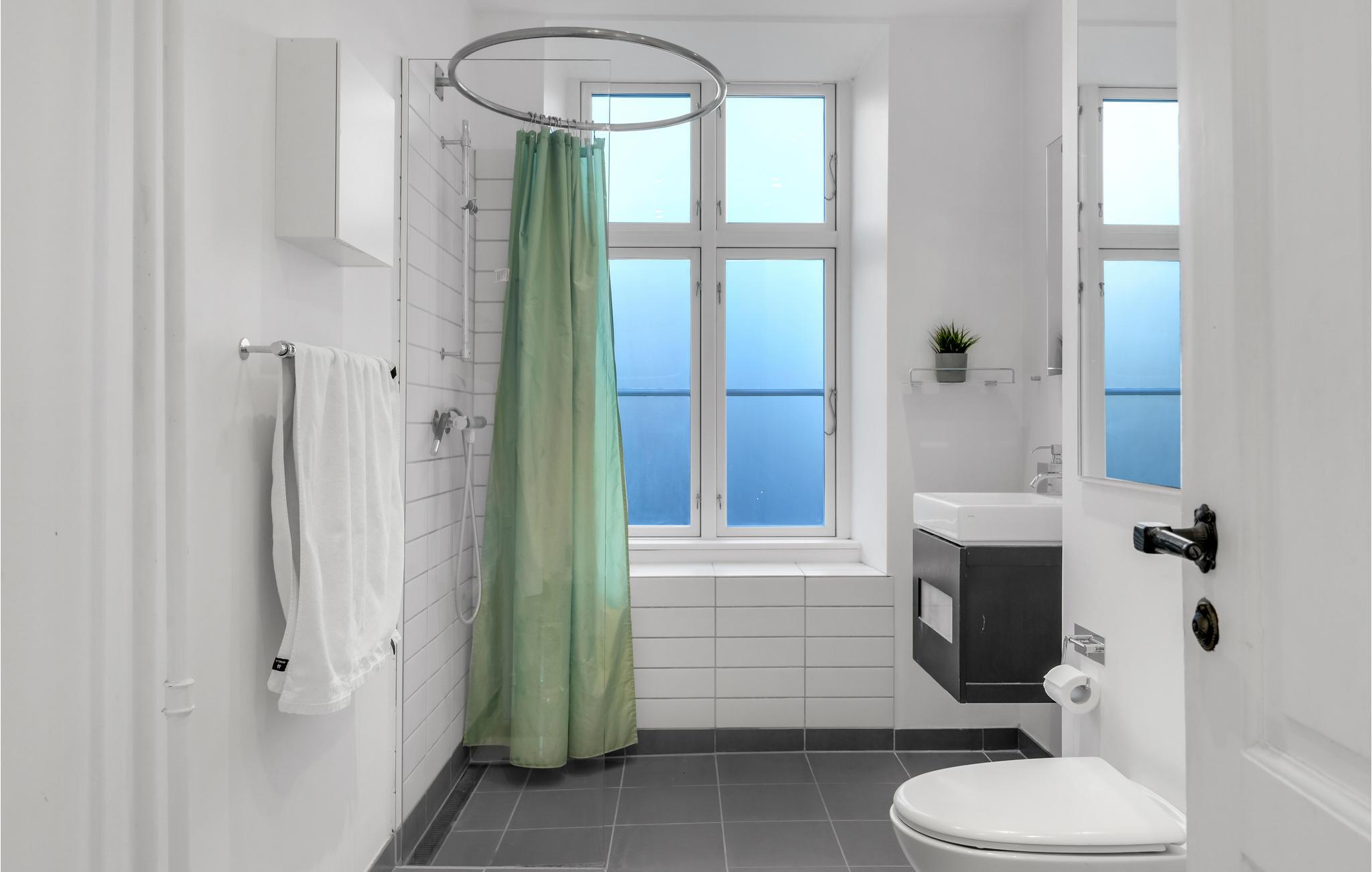 Badeværelse (nr. 1) - WC. Varmt og koldt vand. Bruser