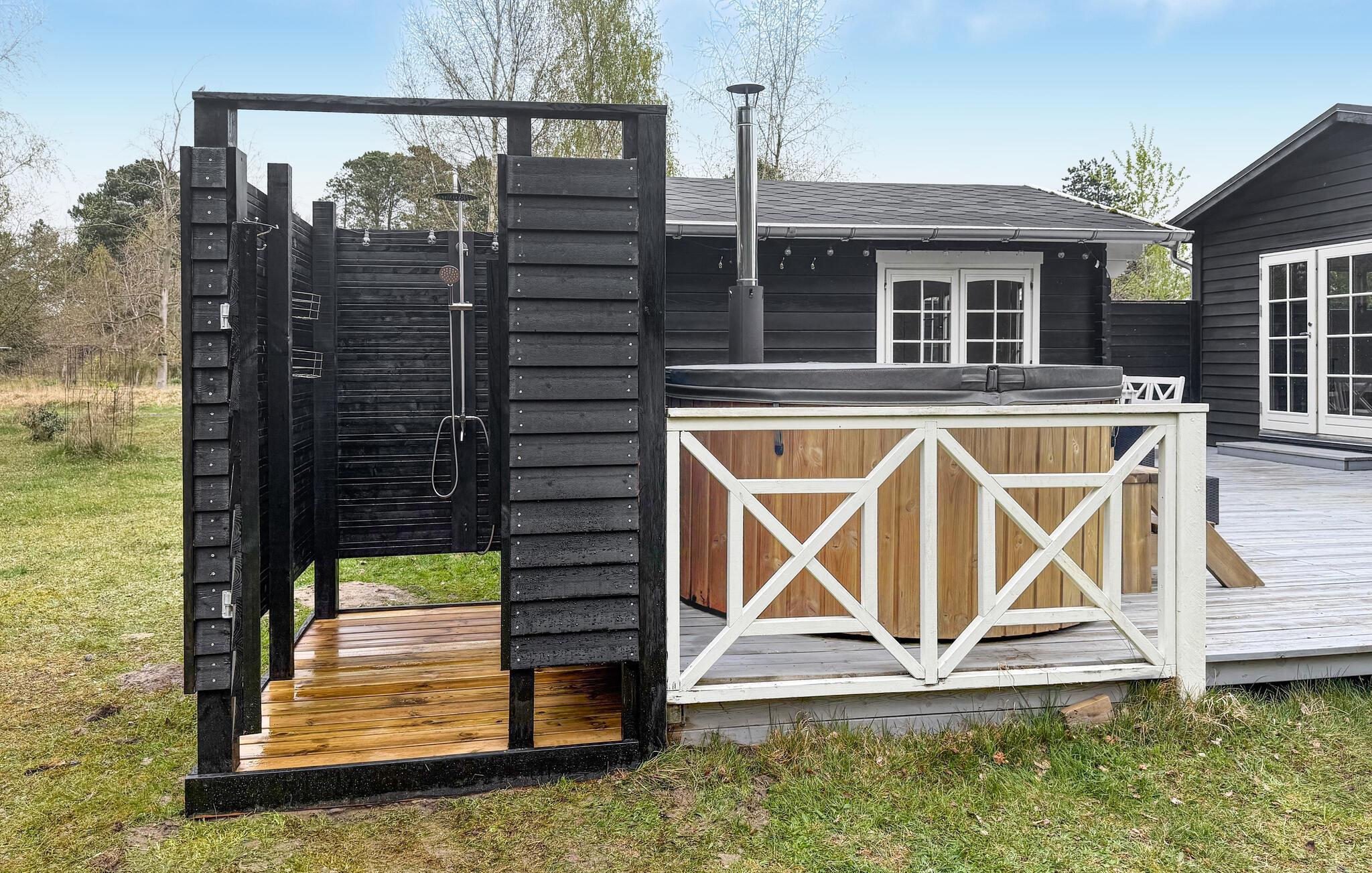 Udendørs er der masser at lave for børnene, som kan kaste sig over legetøjet eller et spil kroket. På terrassen med åbne og overdækkede områder kan I altid finde en god krog, når I vil læse en god bog eller spise middag sammen. Hvis I trænger til at slappe ekstra godt af efter en lang dag på farten, kan I læne jer tilbage i vildmarksbadet og fylde lungerne med den friske luft, mens I sidder i det varme vand.