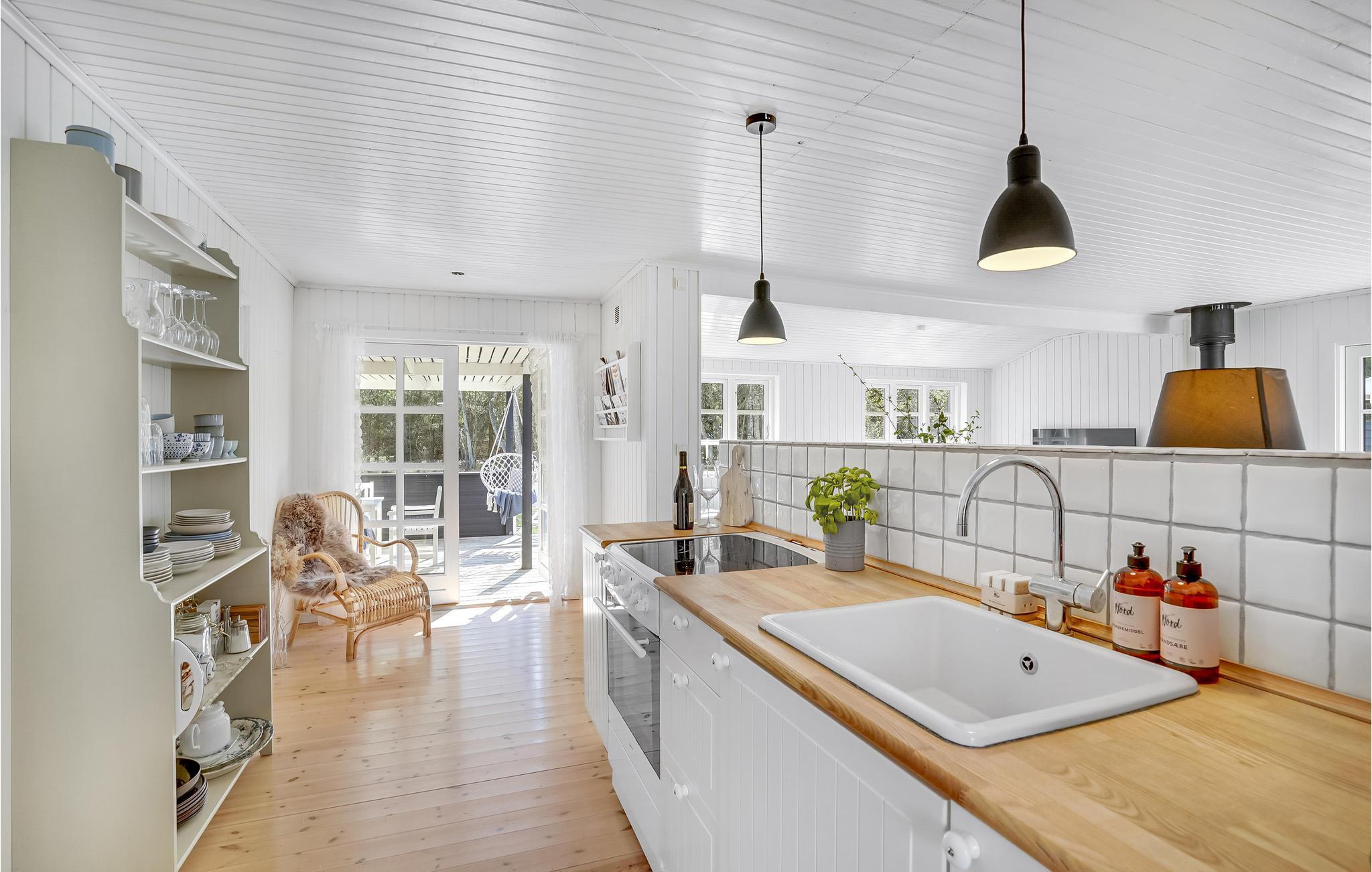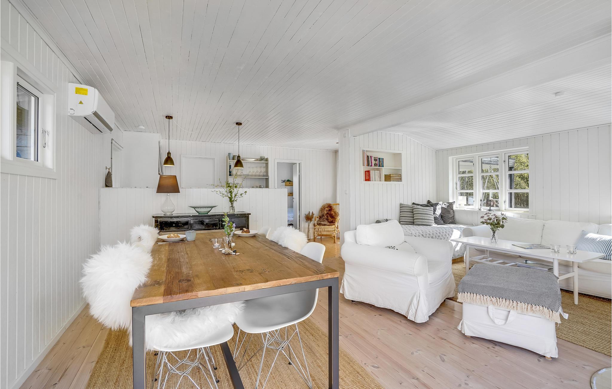 Nyd et par ubekymrede feriedage i dette hyggelige sommerhus nær Rødbyhavn. Dette stemningsfulde træhus er lyst og pænt møbleret og godt indrettet til en større familie, da et af soveværelserne ligger i annekset. Husets hjerte er den dejlige opholdsstue med sofahjørne, spiseplads og et åbent køkken, hvor I kan tilbringe hyggelige aftener sammen, mens ilden knitrer i brændeovnen.