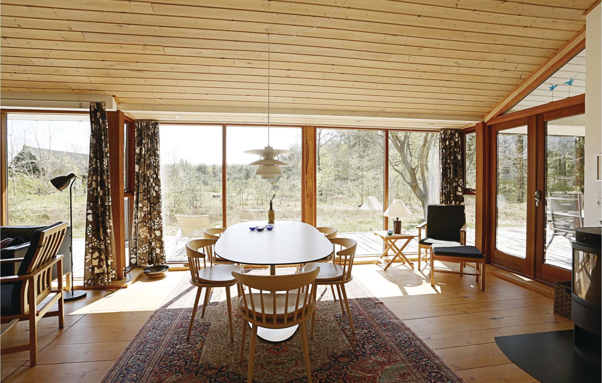 Flot og indbydende luksushus med mange moderne faciliteter og høj komfort overalt. Huset er bygget af førsteklasses materialer og er et lavenergihus med varmepumpeanlæg. Fra den velindrettede kombinerede opholds- pg spisestue i det store åbne rum med flotte møbler og brændeovn, er der udgang til en pragtfuldt træterrasse med gode havemøbler, et udekøkken og udvendig pejs. Der er gratis internet, ligesom der er TV med net-flix adgang. Har I selv adgang derhjemme til net-flix kan egen kode benyttes. 2 gode badeværelser, heraf eet med spa-bad og sauna. Gode soveværelser. Fra huset er der ikke langt til en pragtfuld sandstrand, røgeri og en hyggelig småbådehavn samt gourmet-restauranten, Kadeau, hvor I kan nyde et uforglemmeligt måltid med udsigt til havet .
