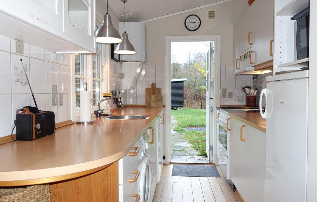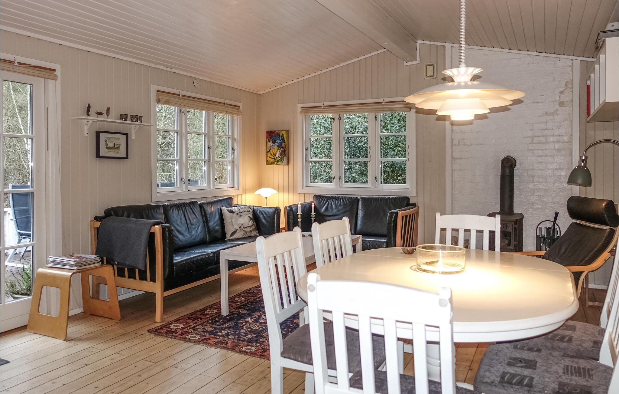 Husets hjerte er den nydelige opholdsstue med spiseplads, hvor I kan slappe af i komfortable møbler, mens I ser fjernsyn, hører radio eller musik og om vinteren lytter til de knitrende flammer i brændeovnen. I forlængelse heraf ligger det åbne, veludstyrede køkken med bl.a. opvaskemaskine og vaskemaskine. Der er gulvvarme på badeværelset. Huset har to soveværelser og en tredje soveplads (dobbeltseng på 140 cm) i et hyggeligt anneks, der udgør 12 af de totale 67 m2.