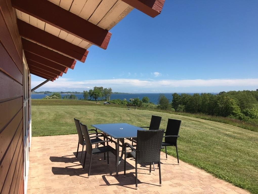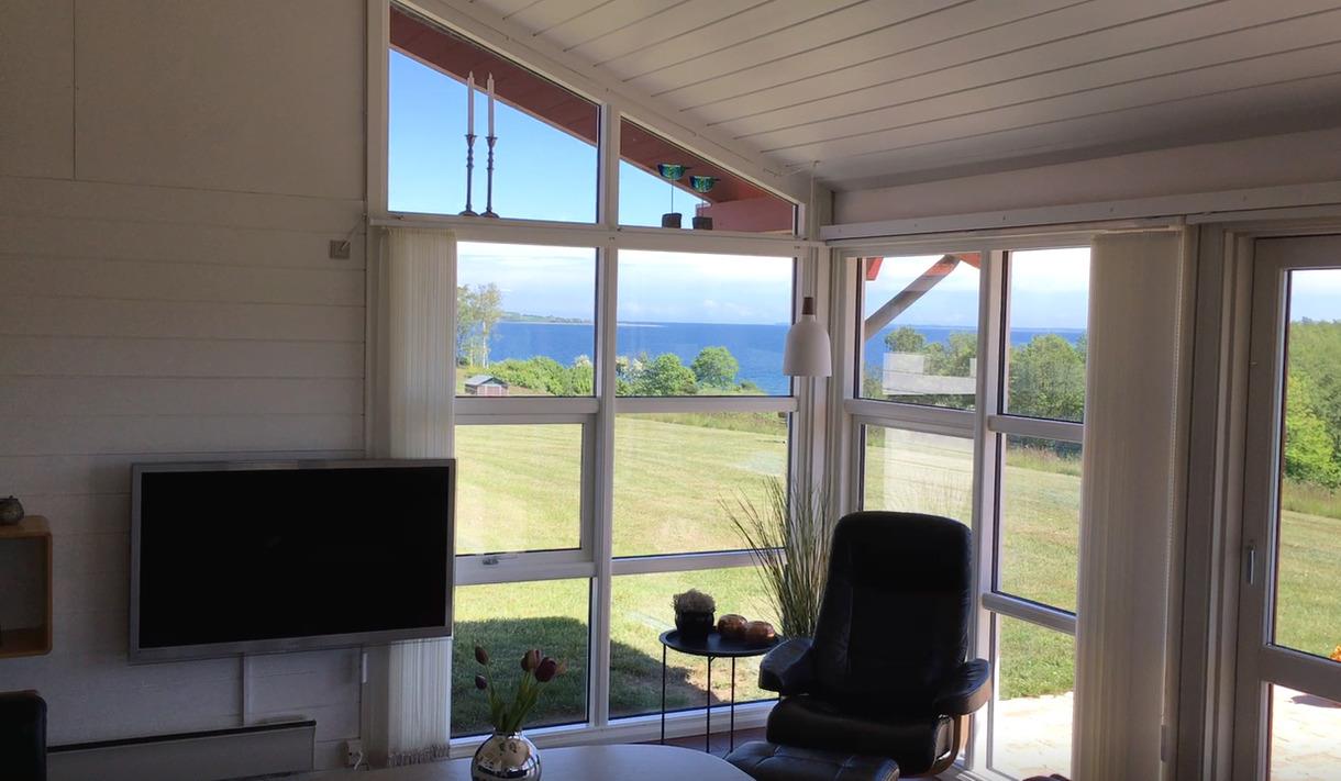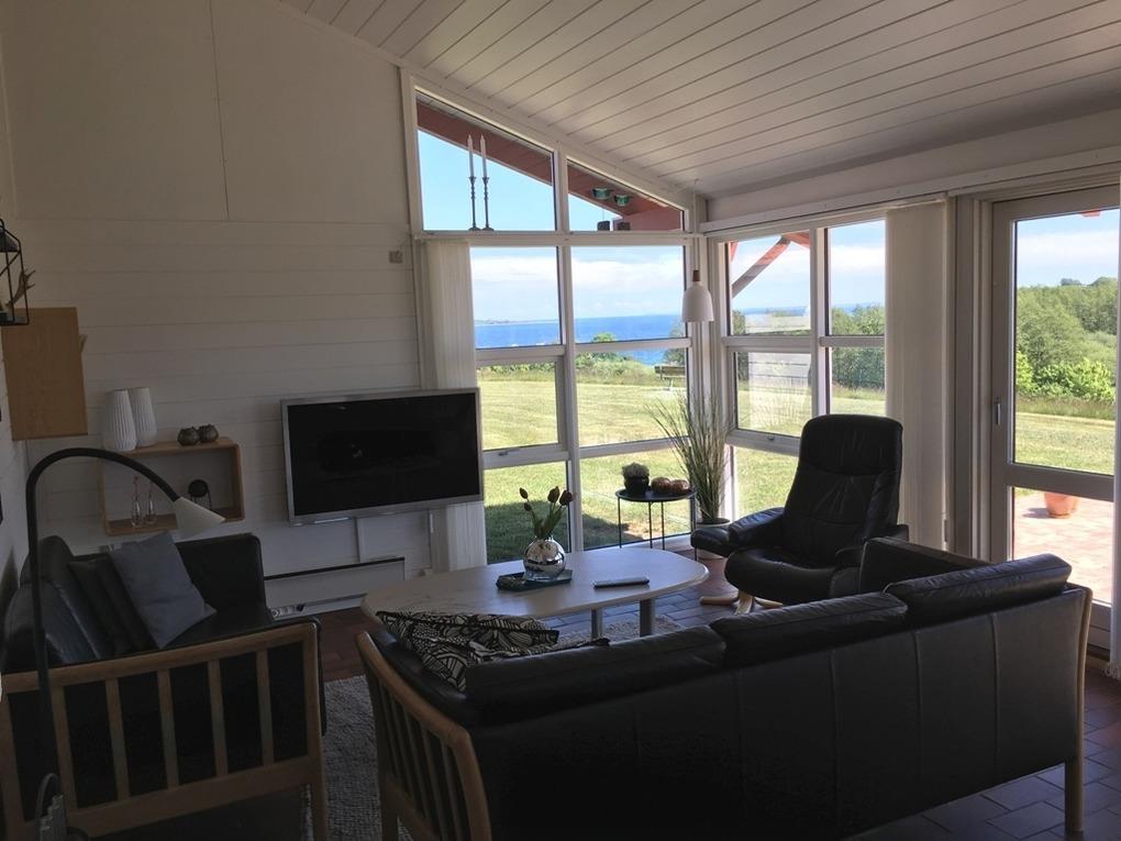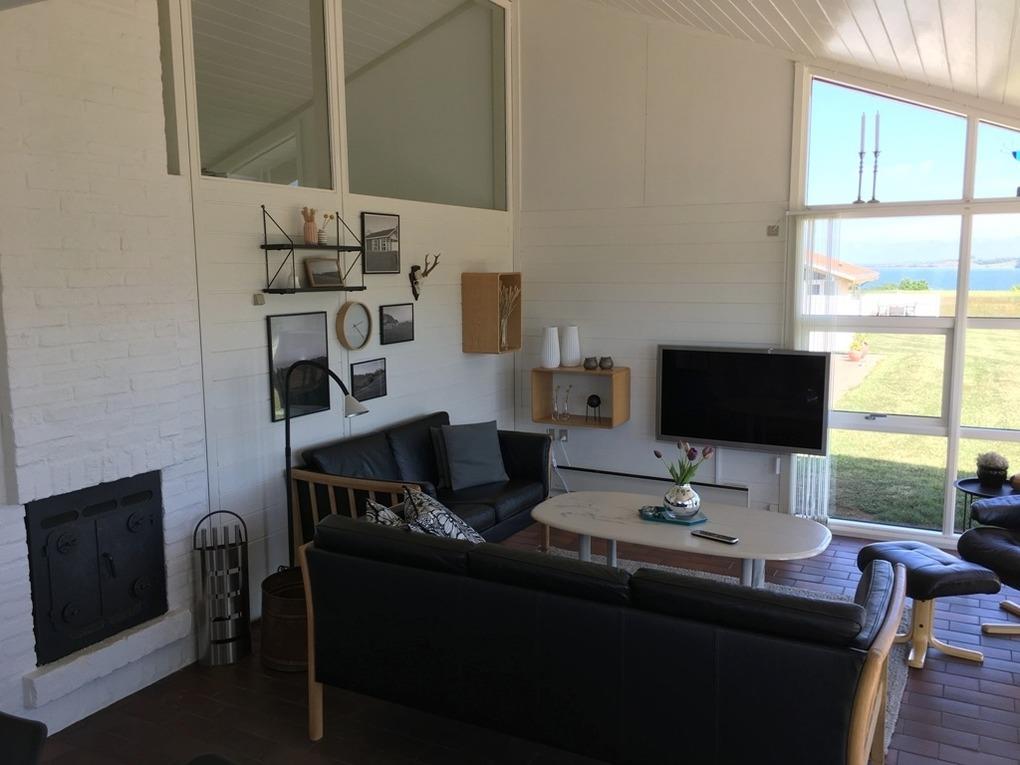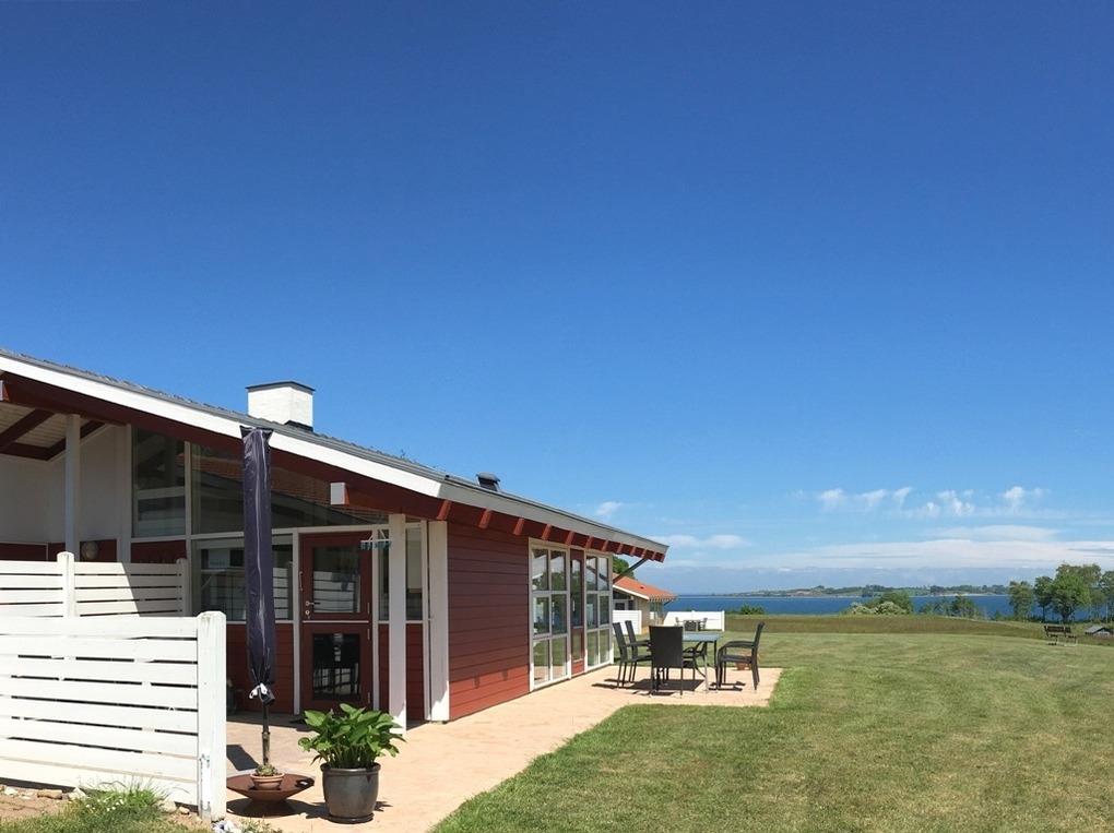 Von der Terrasse, der Küche und nicht zuletzt den großen Fenstern im Wohnzimmer haben Sie einen beeindruckenden und herrlichen Panoramablick über den kleinen Belt und die schöne Landschaft. Dass die Terrasse nach Richtung Süden gerichtet ist und das Haus recht hoch liegt, macht die Aussicht noch mehr bereichernd. Sie haben einfach unverbauten Traum Panoramablick aus der ersten Reihe !