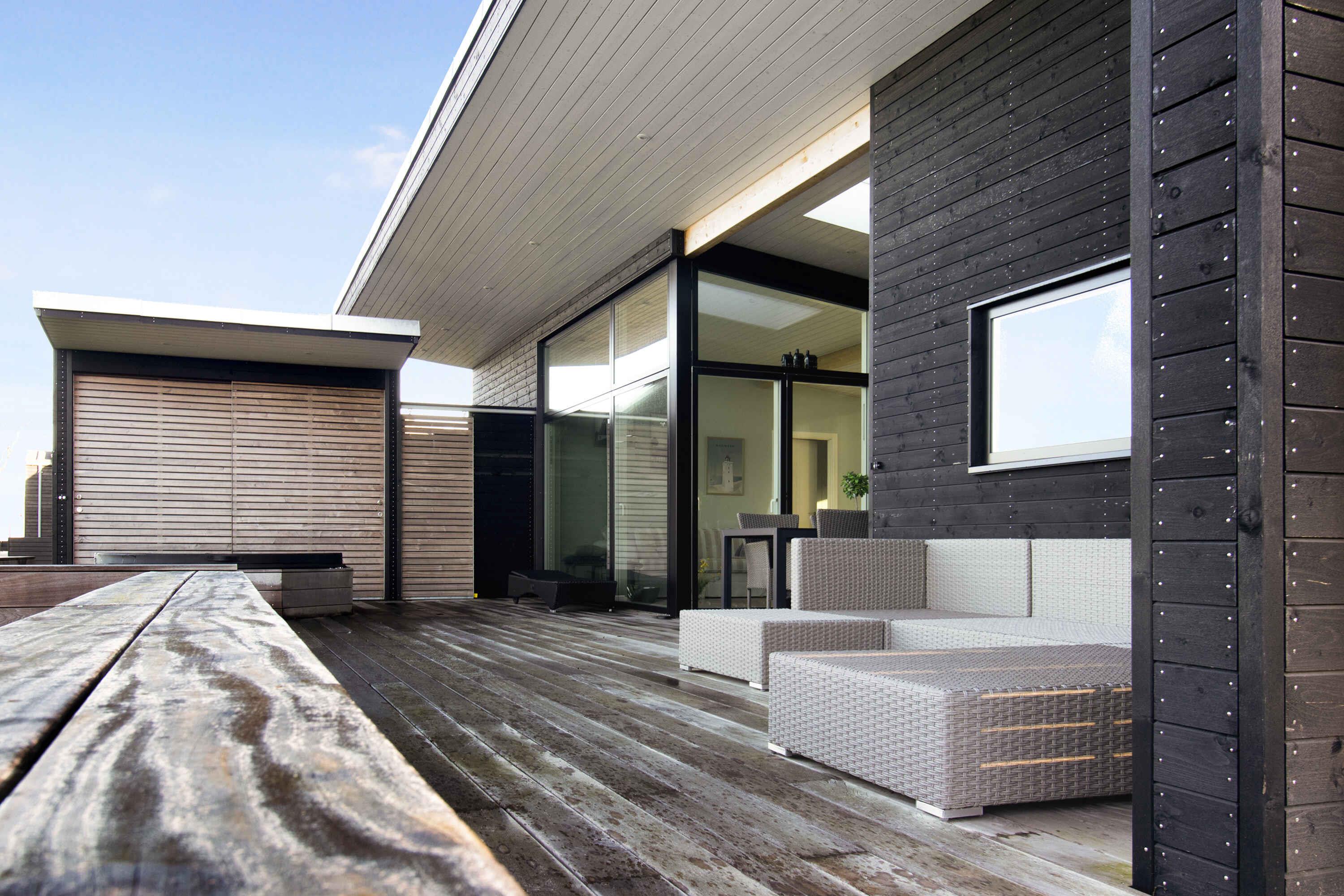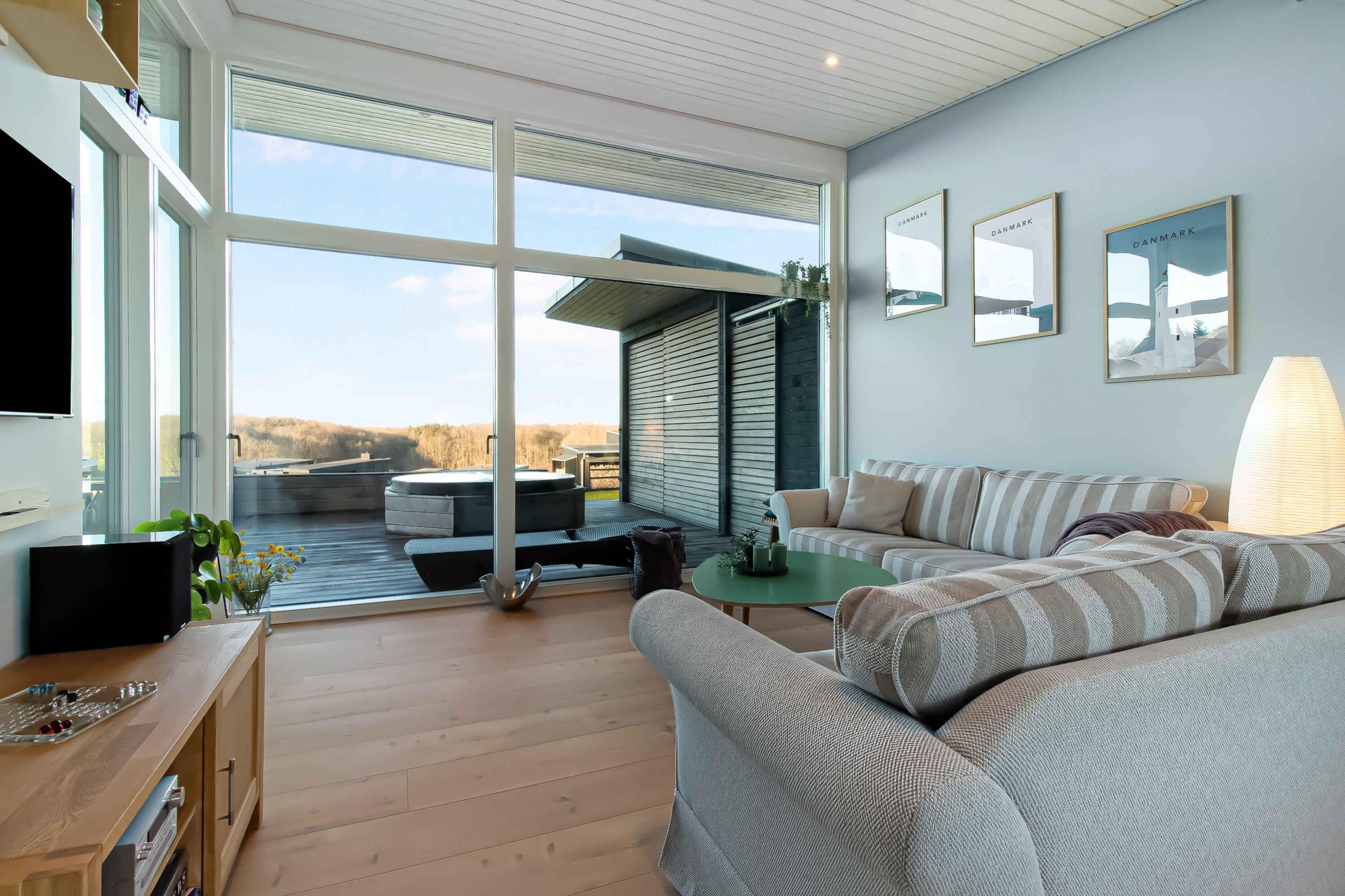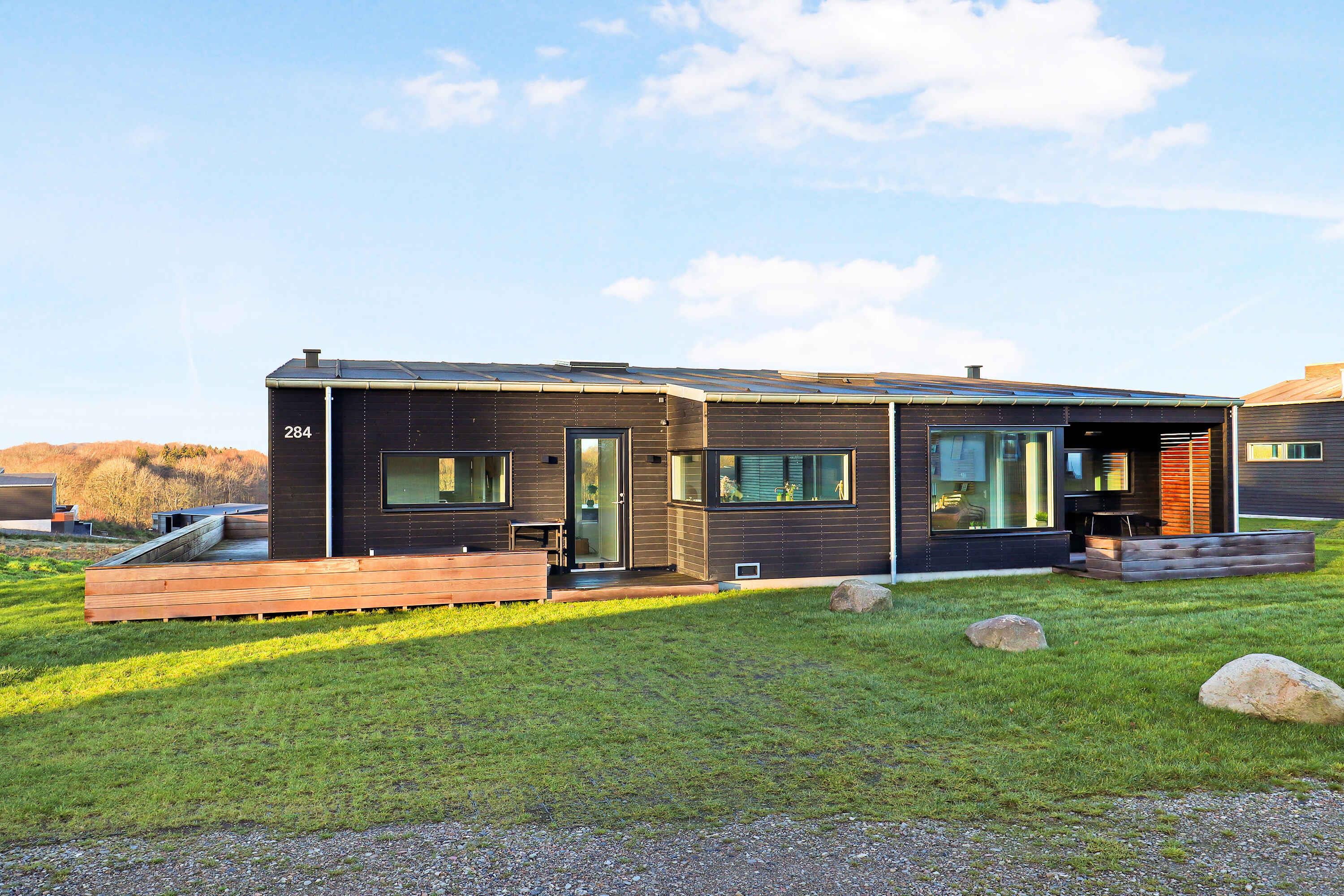 Nyt topmoderne sommerhus ved Genner Bugten med panoramaudsigt, vildmarksbad og kort afstand til strand og golf.
