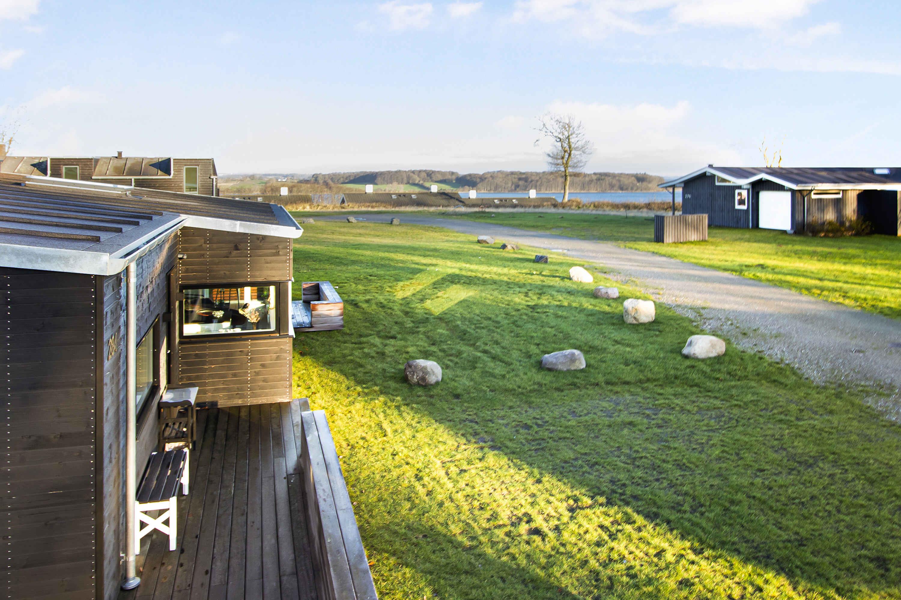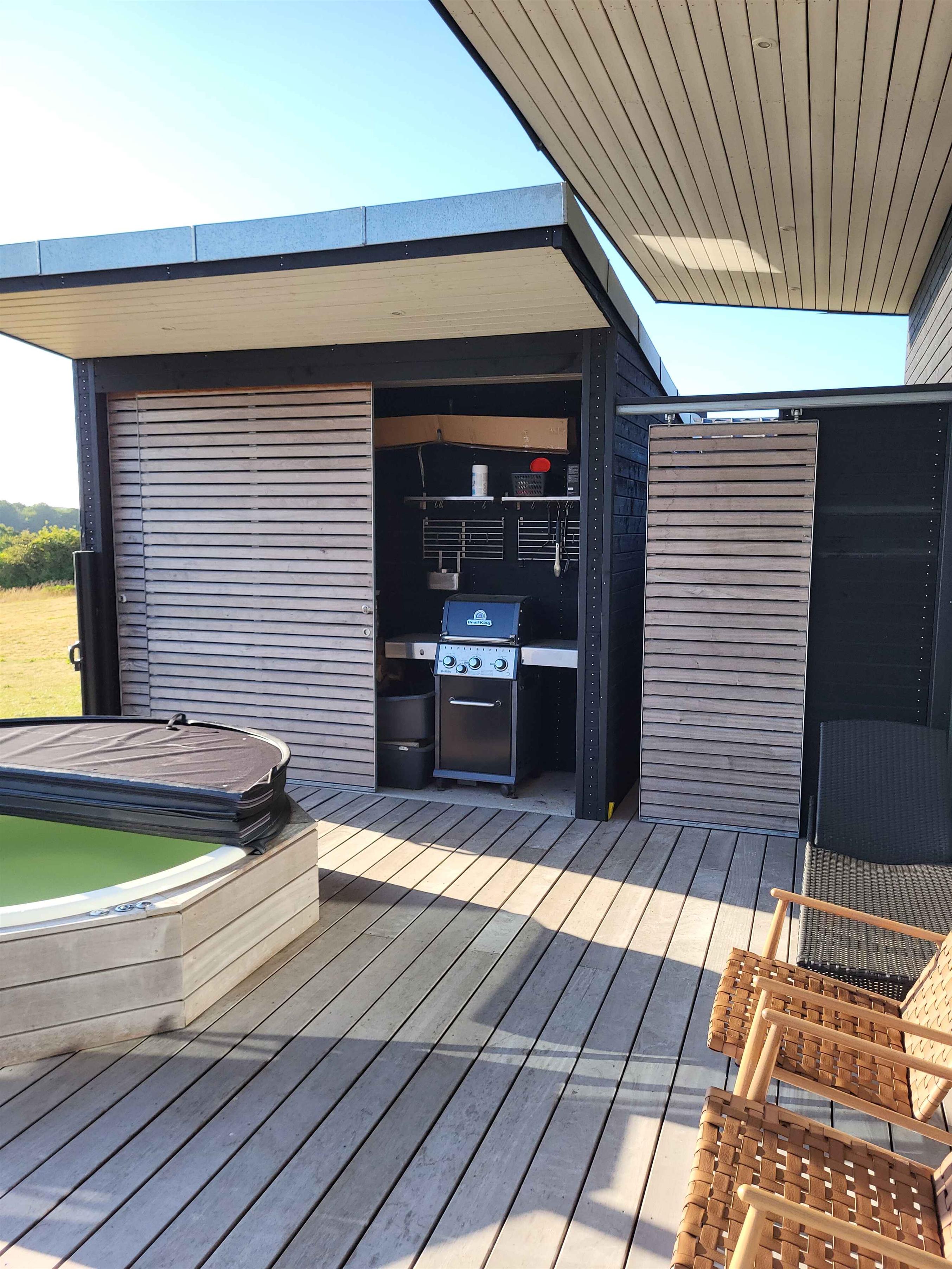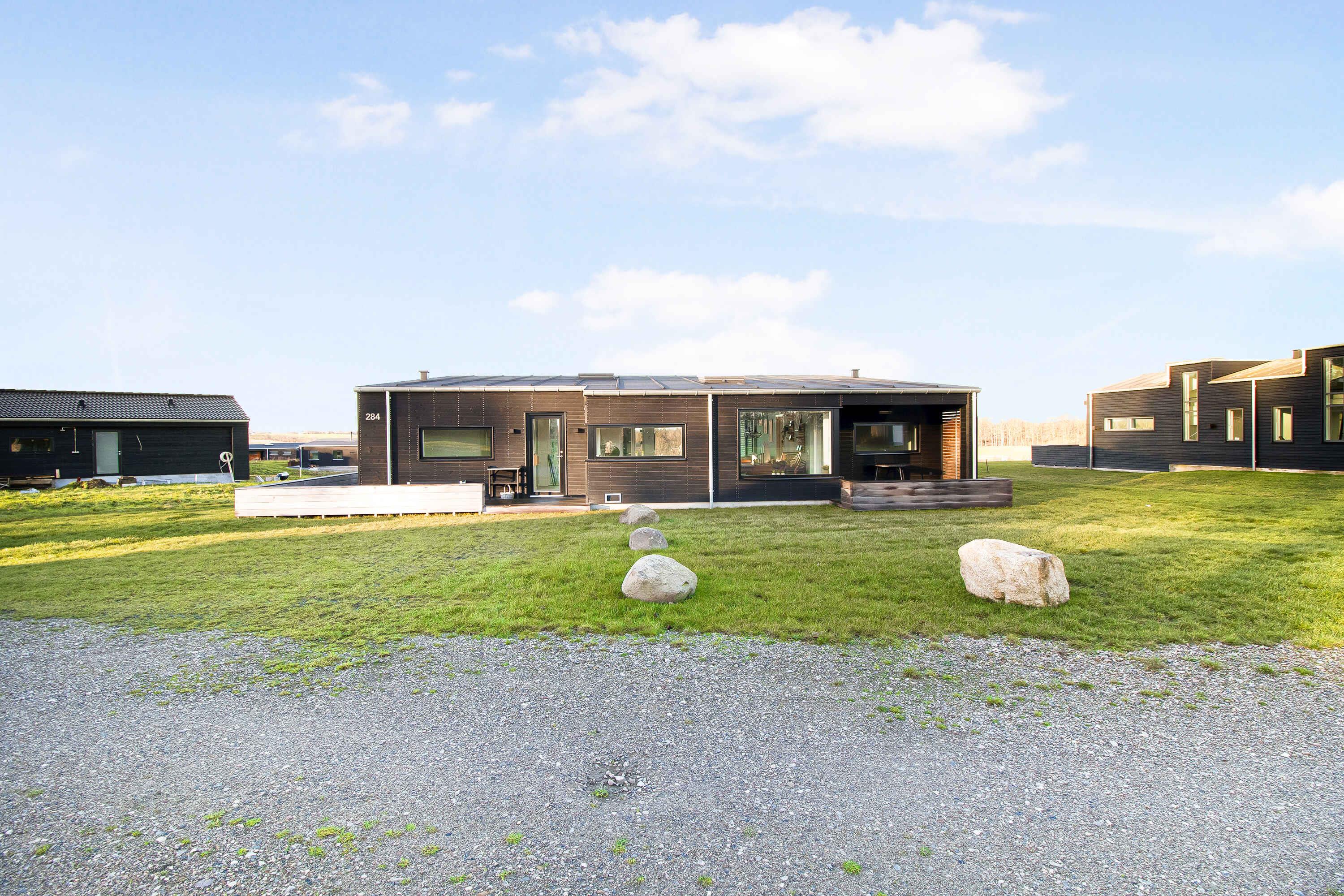 Nyt topmoderne sommerhus ved Genner Bugten med panoramaudsigt, vildmarksbad og kort afstand til strand og golf.