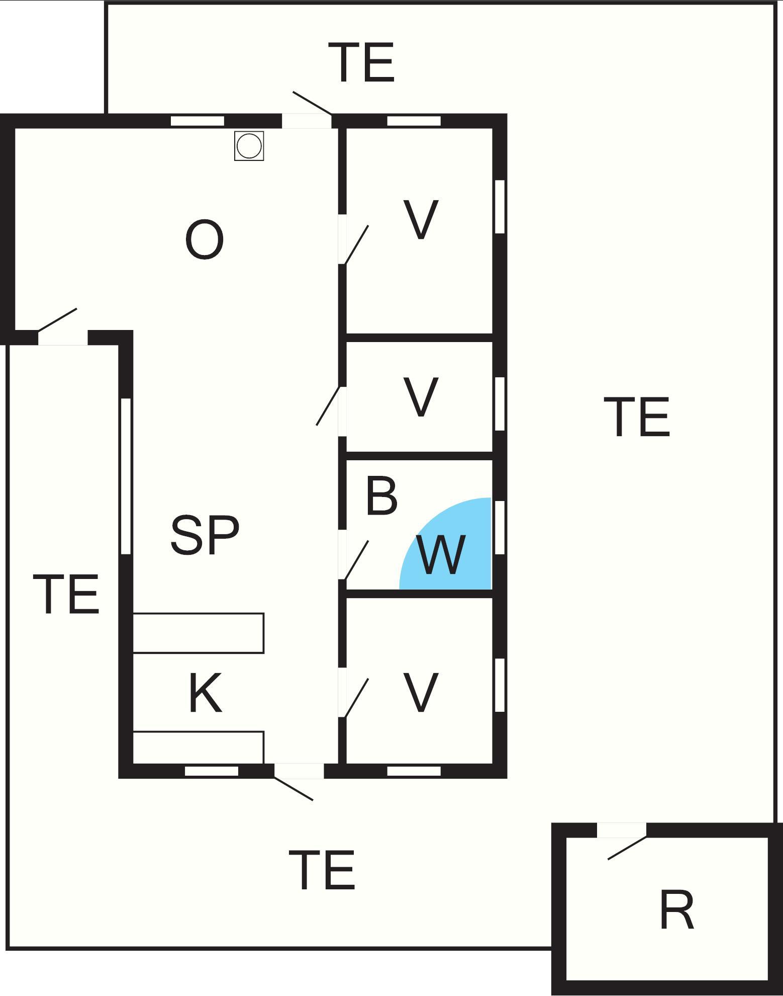 1 Opholdsstue: Brændeovn, tv, høj stol