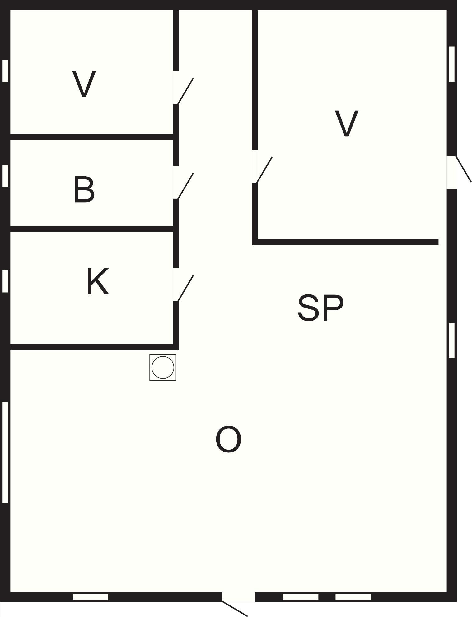 1 Opholdsstue: Brændeovn, radio, stereoanlæg med cd, tv, kabel-tv