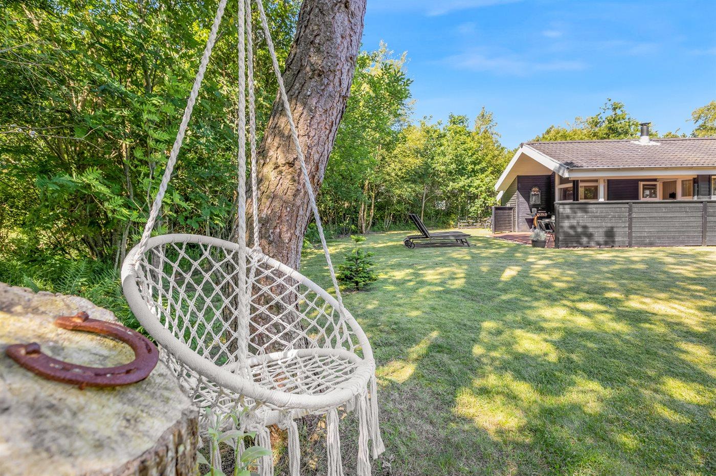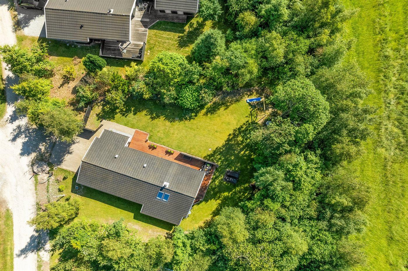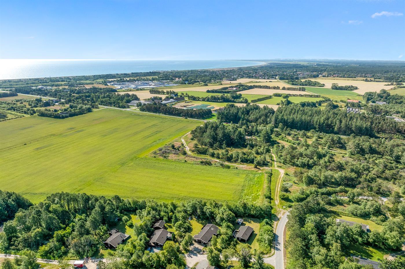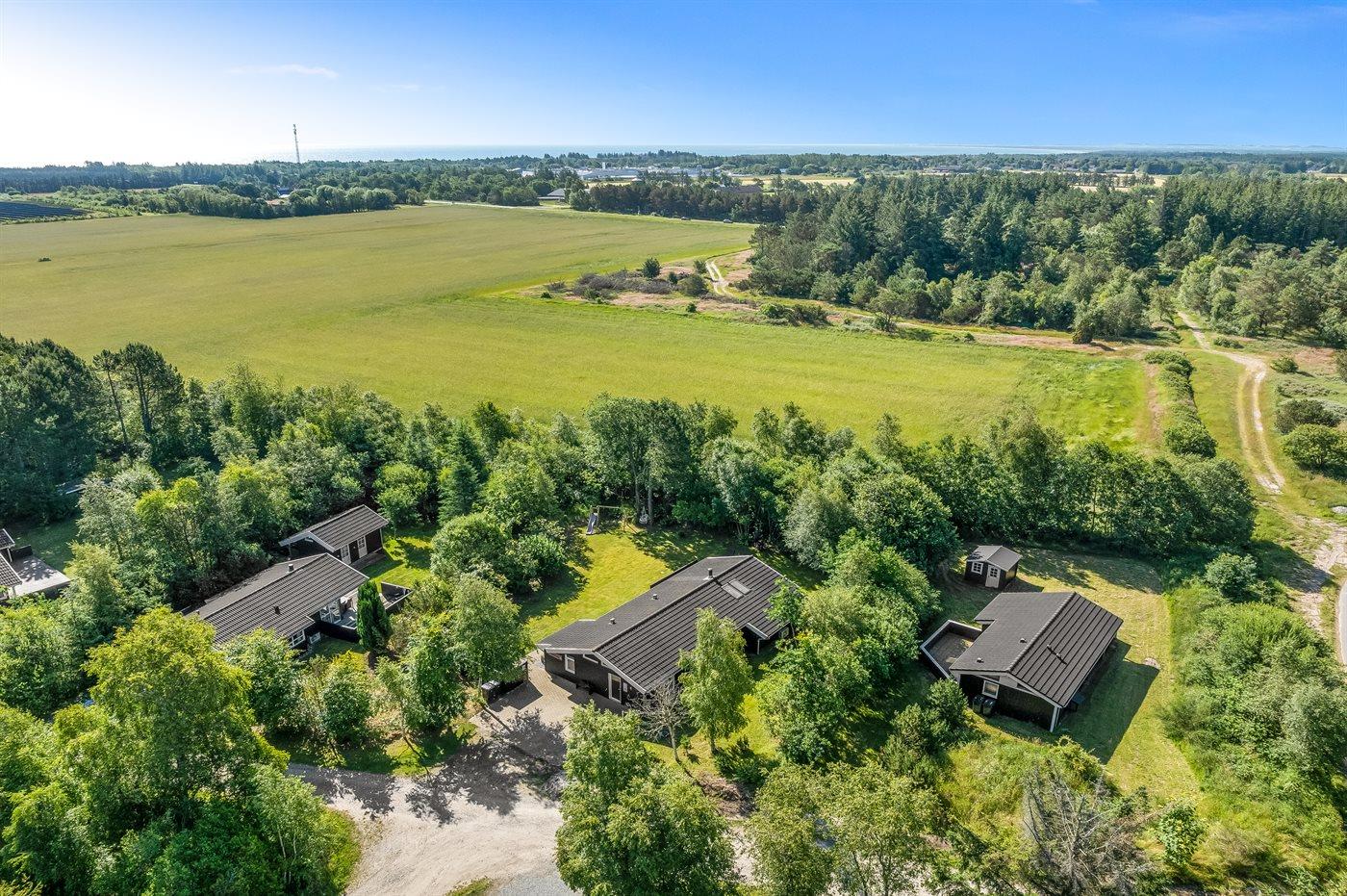 Ferieboligen er beliggende på en 1025 m² stor naturgrund. Grunden er indhegnet. Der er 1500 m til havet. Nærmeste forretning er beliggende i en afstand af 2000 m. Til ferieboligen hører åbent terrasseareal. Desuden er der overdækket terrasse. Gynge. Rutchebane. Grill til rådighed. Parkering ved ferieboligen.