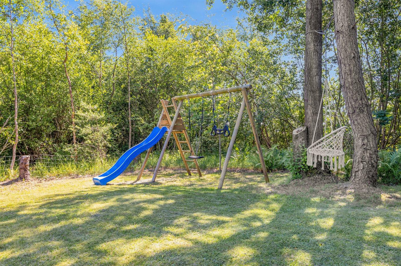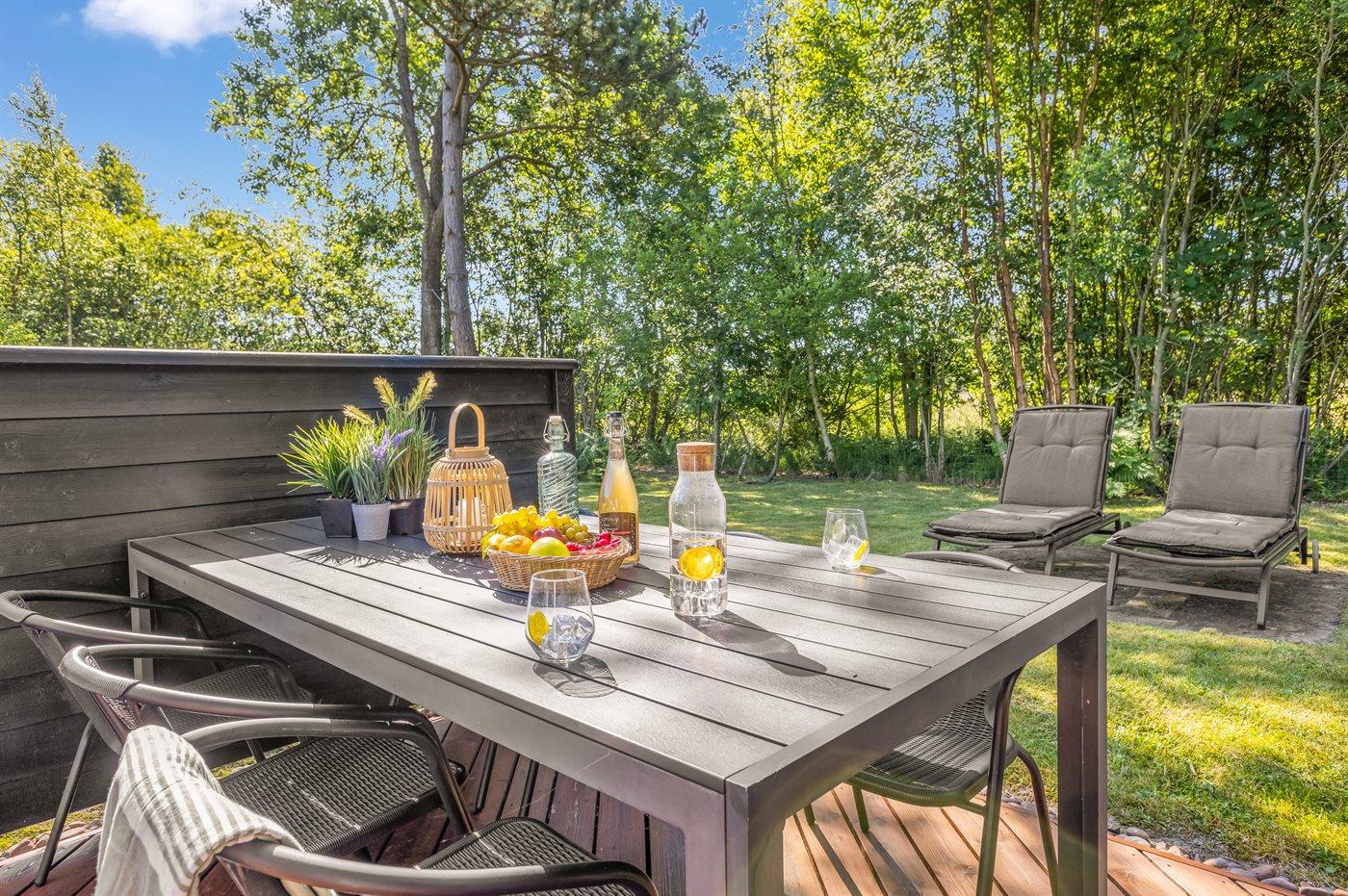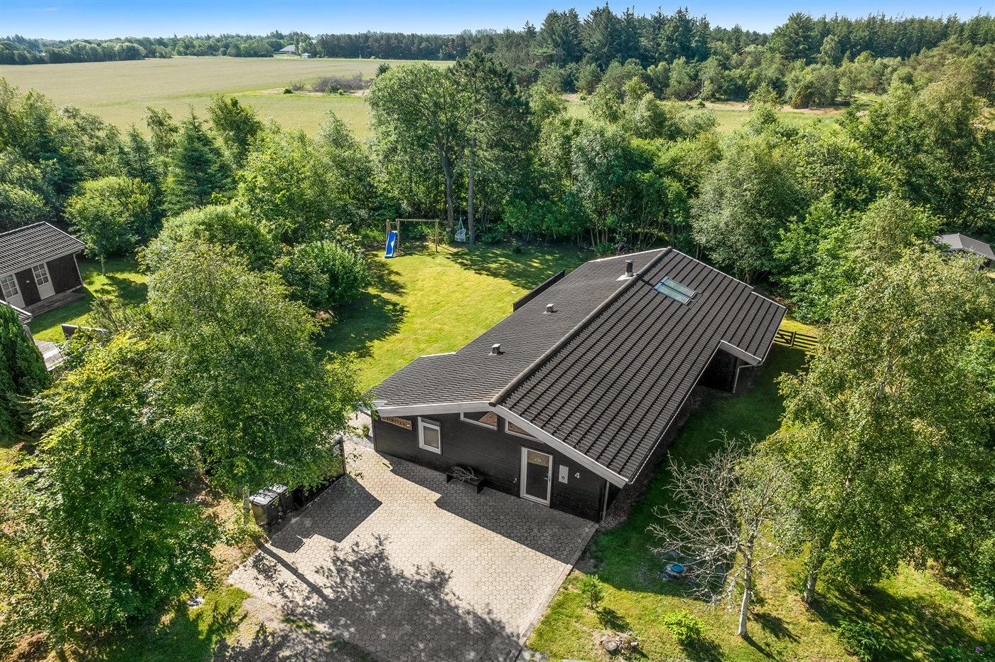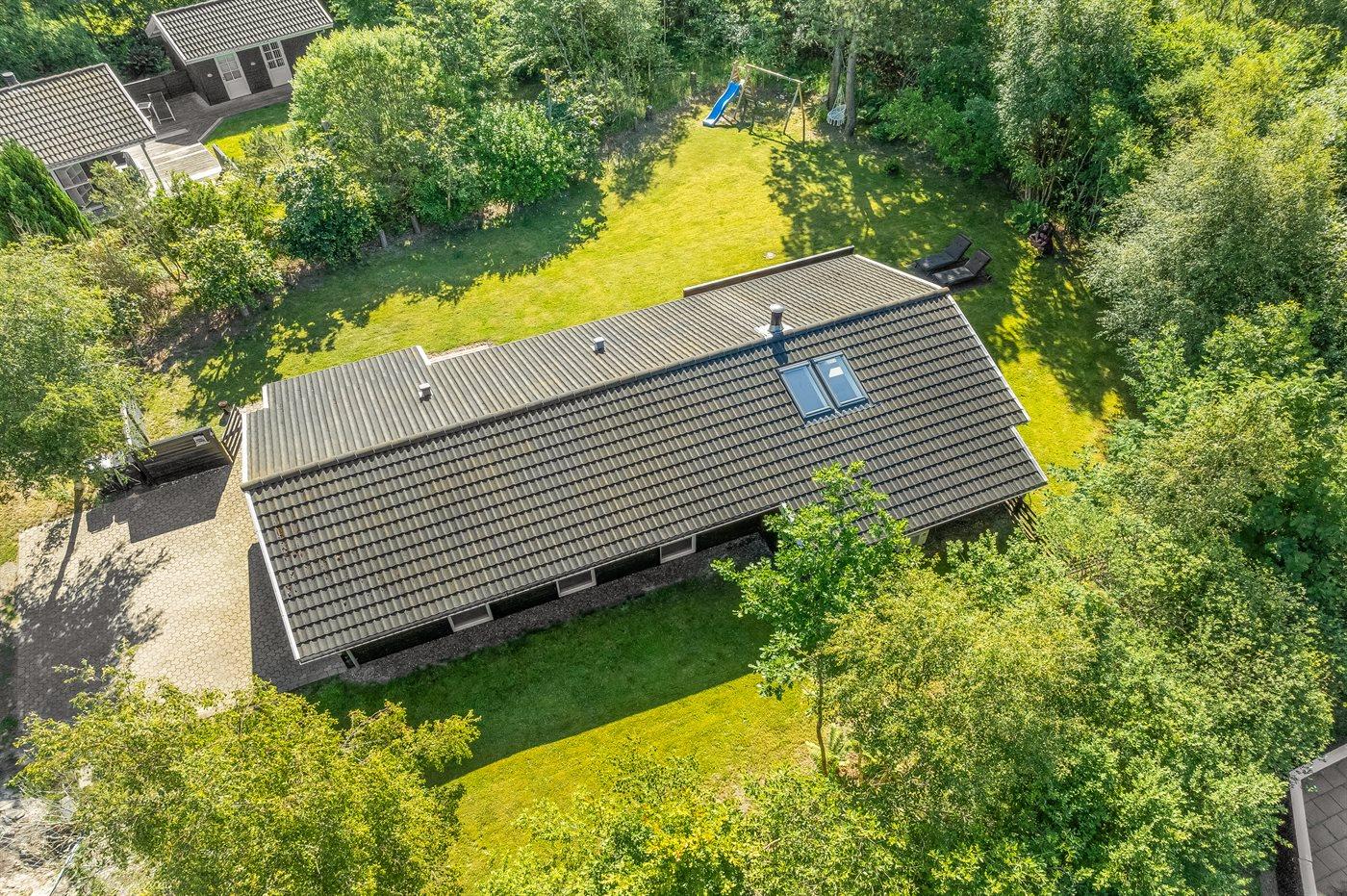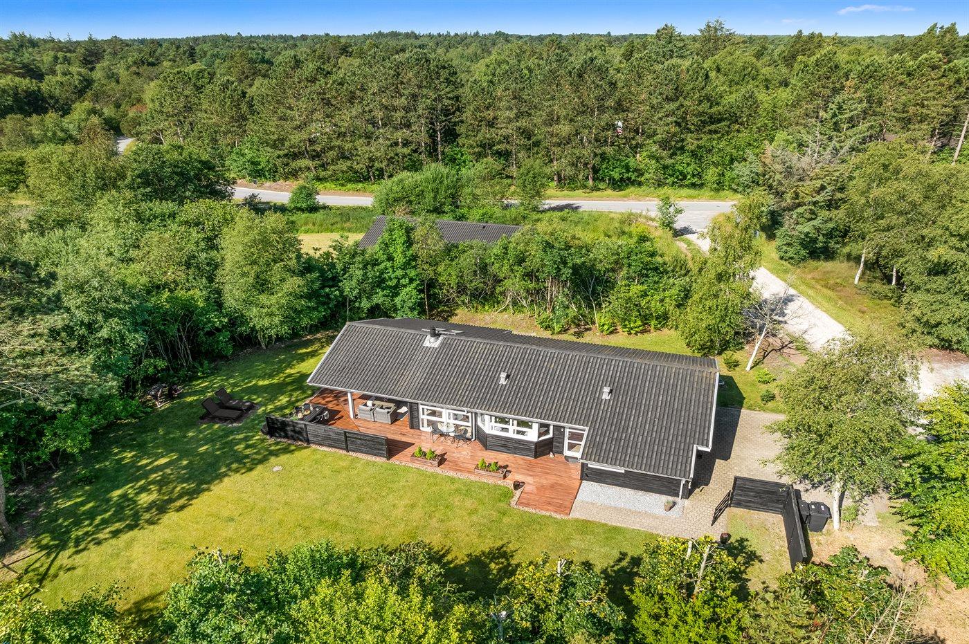 Ferieboligen er beliggende på en 1025 m² stor naturgrund. Grunden er indhegnet. Der er 1500 m til havet. Nærmeste forretning er beliggende i en afstand af 2000 m. Til ferieboligen hører åbent terrasseareal. Desuden er der overdækket terrasse. Gynge. Rutchebane. Grill til rådighed. Parkering ved ferieboligen.