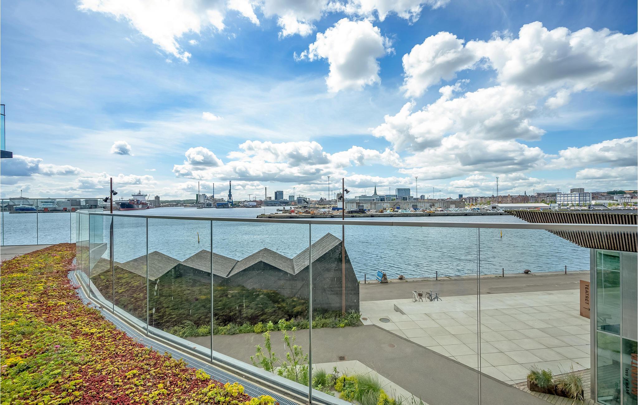 Moderne lejlighed på Aarhus Ø med havudsigt og kun få skridt til badebro og byliv.