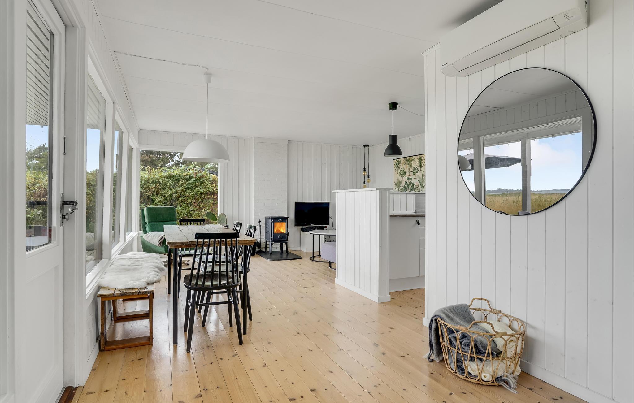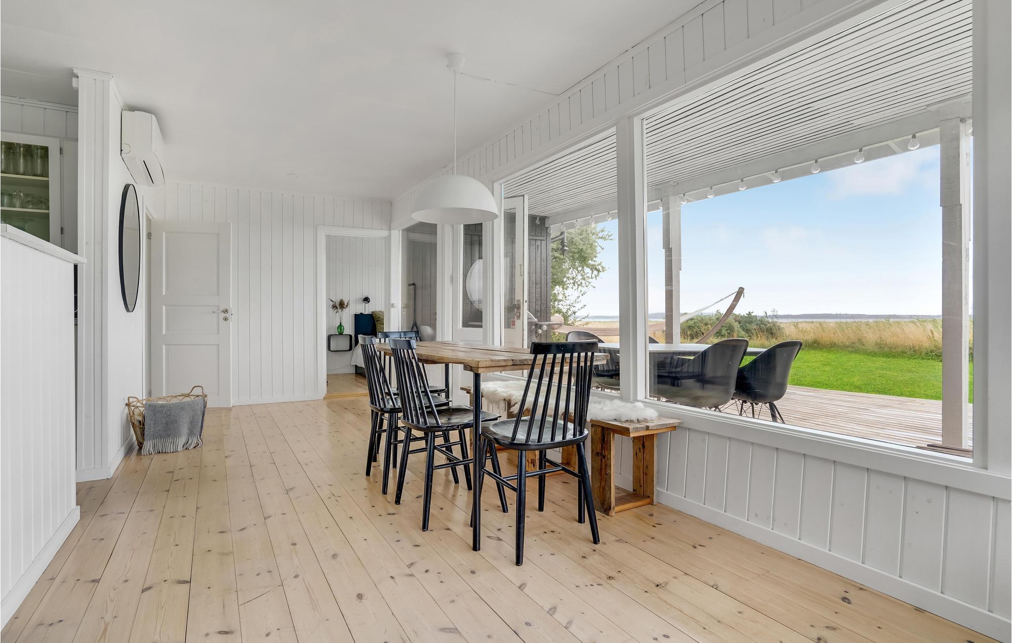 Dette feriehus ligger med enestående udsigt ud mod Atterup Fjord i første række på Abildøre. Huset rummer delvist åbent køkken i åben forbindelse med stuen, hvor der også er spiseafdeling samt brændeovn. Fra stuen udgang til en stor, skøn terrasse, hvor I kan sidde både overdækket og under åben himmel og nyde solen, mens den selvfangne fisk ligger på grillen. Endvidere indeholder huset to soveværelser og yderligere overnatning er mulig i annekset. Indhegnet grund.