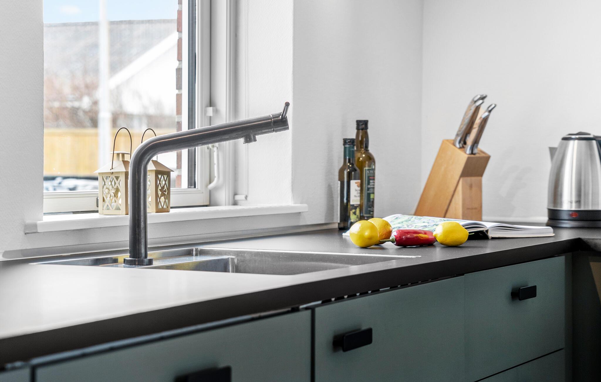 Charmerende feriehus nær Jyllands vestkyst med moderne køkken, terrasse og smuk naturudsigt.