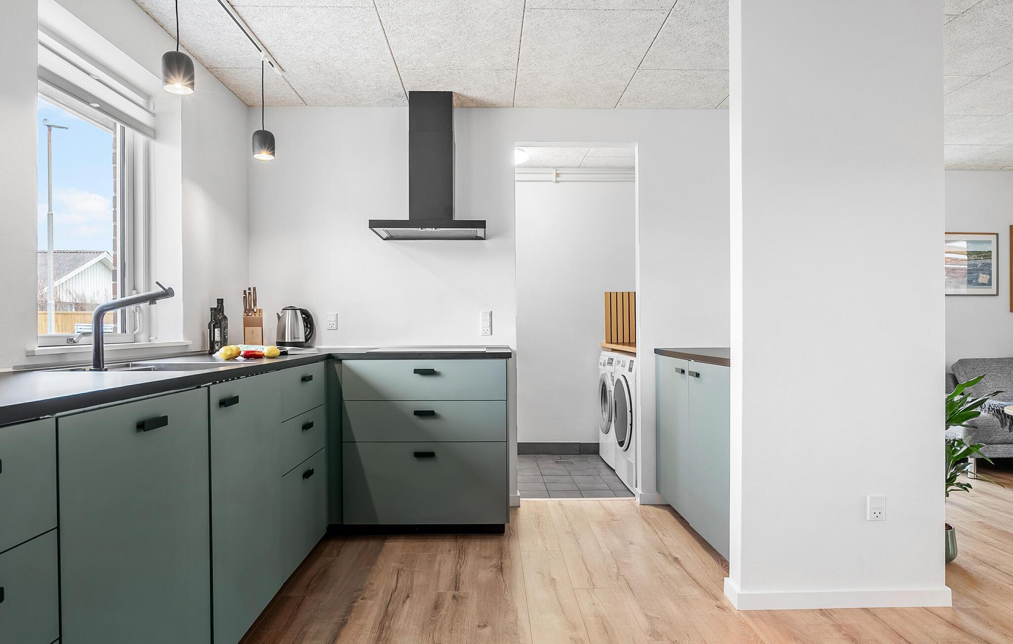 Når I ankommer, byder dette sommerhus jer velkommen med lyse værelser og en smagfuld, hyggelig atmosfære. Nyd den indbydende atmosfære, præget af den stilrene indretning og de attraktive trædetaljer. Brug det moderne åbne køkken til at lave mad sammen på en afslappet måde og snak om dagens oplevelser ved det rummelige spisebord. De store vinduespartier giver jer mulighed for til enhver tid at have en smuk udsigt over den omkringliggende natur. Afslut jeres feriedage med en god film i det komfortable siddeområde.