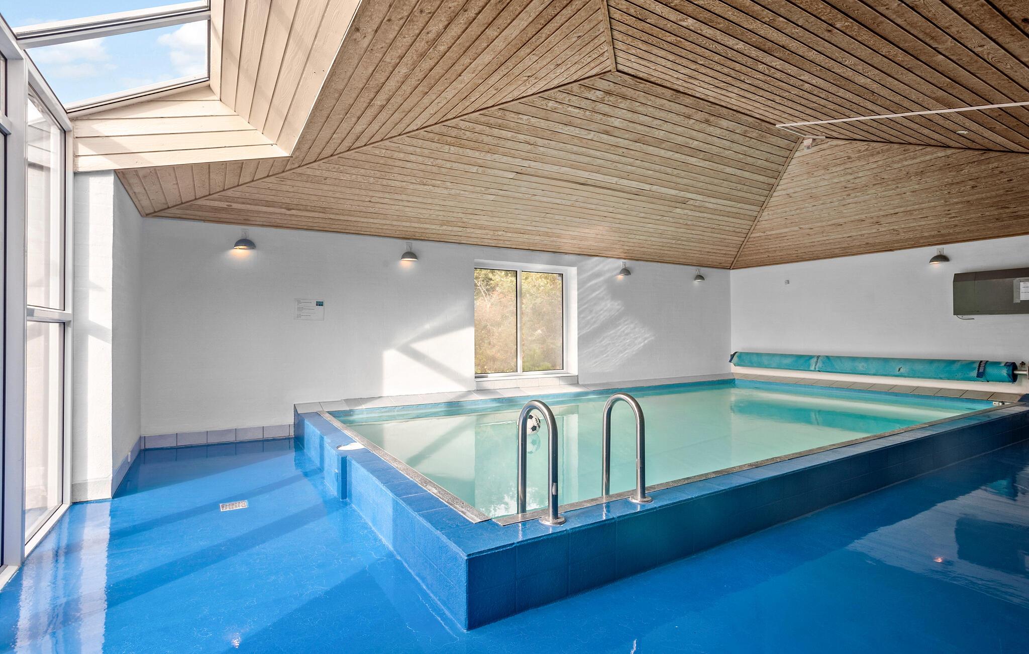 Velkommen til dette hyggelige sommerhus, som er den ideelle base for jeres næste familieferie. Huset giver plads til afslapning og sjove aktiviteter. I alrummet kan I både lave mad i køkkenet, slappe af i loungeområdet ved brændeovnen eller spille brætspil ved spisebordet. Ligeledes kan I svinge benene op og slappe af i sofaerne ovenpå, hvor I også har mulighed for at tænde op i pejsen. I forlængelse af huset er en indendørs pool, hvor børnene kan lege, mens I slapper af i spabadet ved siden af. Efterfølgende kan slutte af med en tur i saunaen.