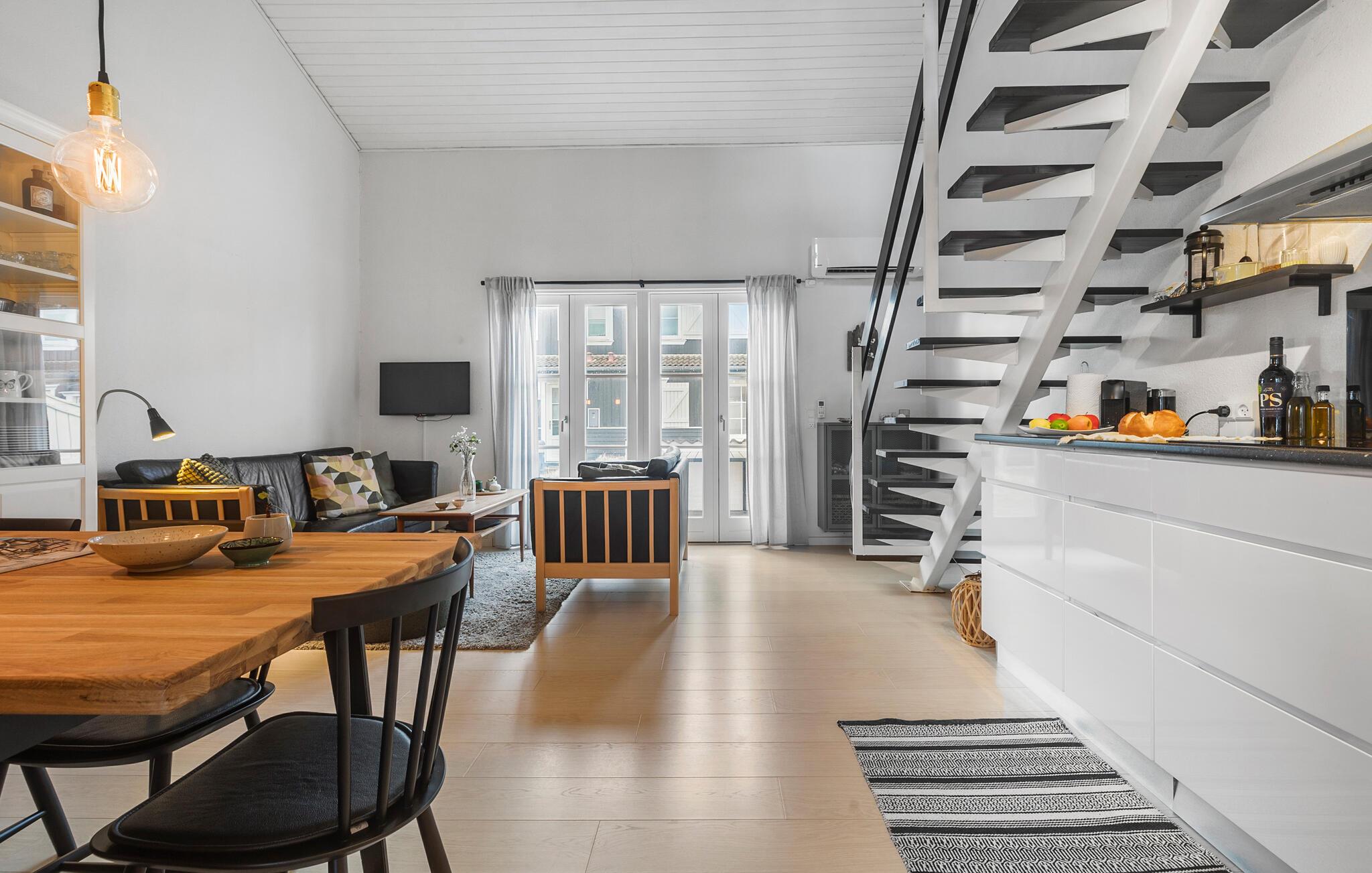 Velkommen til denne smagfulde og velplacerede lejlighed, hvor I kan hygge jer med familien og nyde ferien i en hjemlig atmosfære. Her har I ikke langt til Vesterhavet, fjorden og flere søer. Den attraktive, moderne indretning og lyse rum gør det nemt at føle sig hjemme her, og I kan nyde en smuk udsigt, mens I spiser. Den hyggelige stue lægger op til at sidde sammen længe om aftenen og sludre eller se en film.