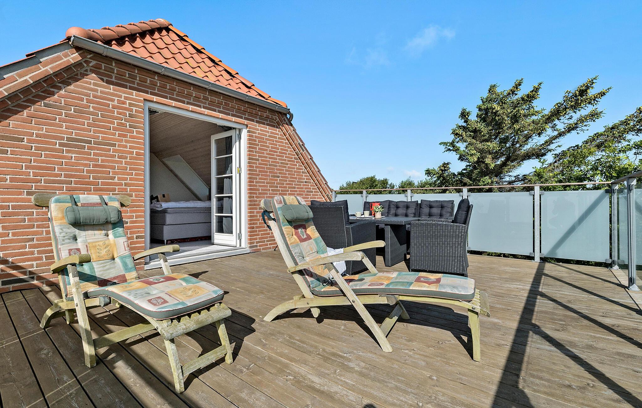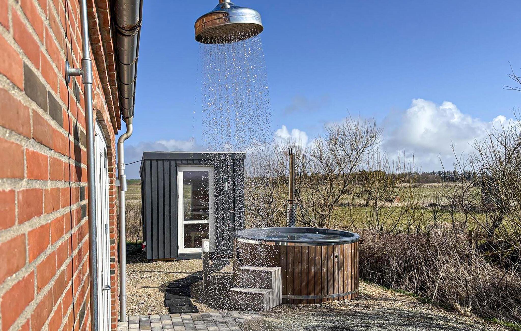 Tilbring afslappende stunder udendørs. Sid på den rummelige tagterrasse og nyd udsigten over markerne og fjorden. Brug de møblerede terrasseområder til udendørs spisning eller slap af i behagelige lænestole. Forkæl jer selv i det finske træbadekar og forkæl jer selv med lidt afslapning under stjernerne.