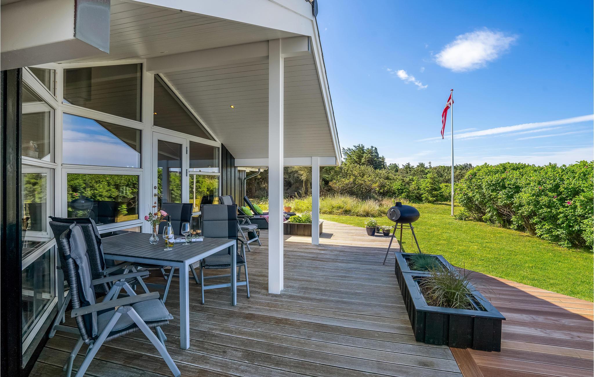 Moderne sommerhus tæt på Agger Strand med vildmarksbad, shelter og smuk udsigt over landskabet.