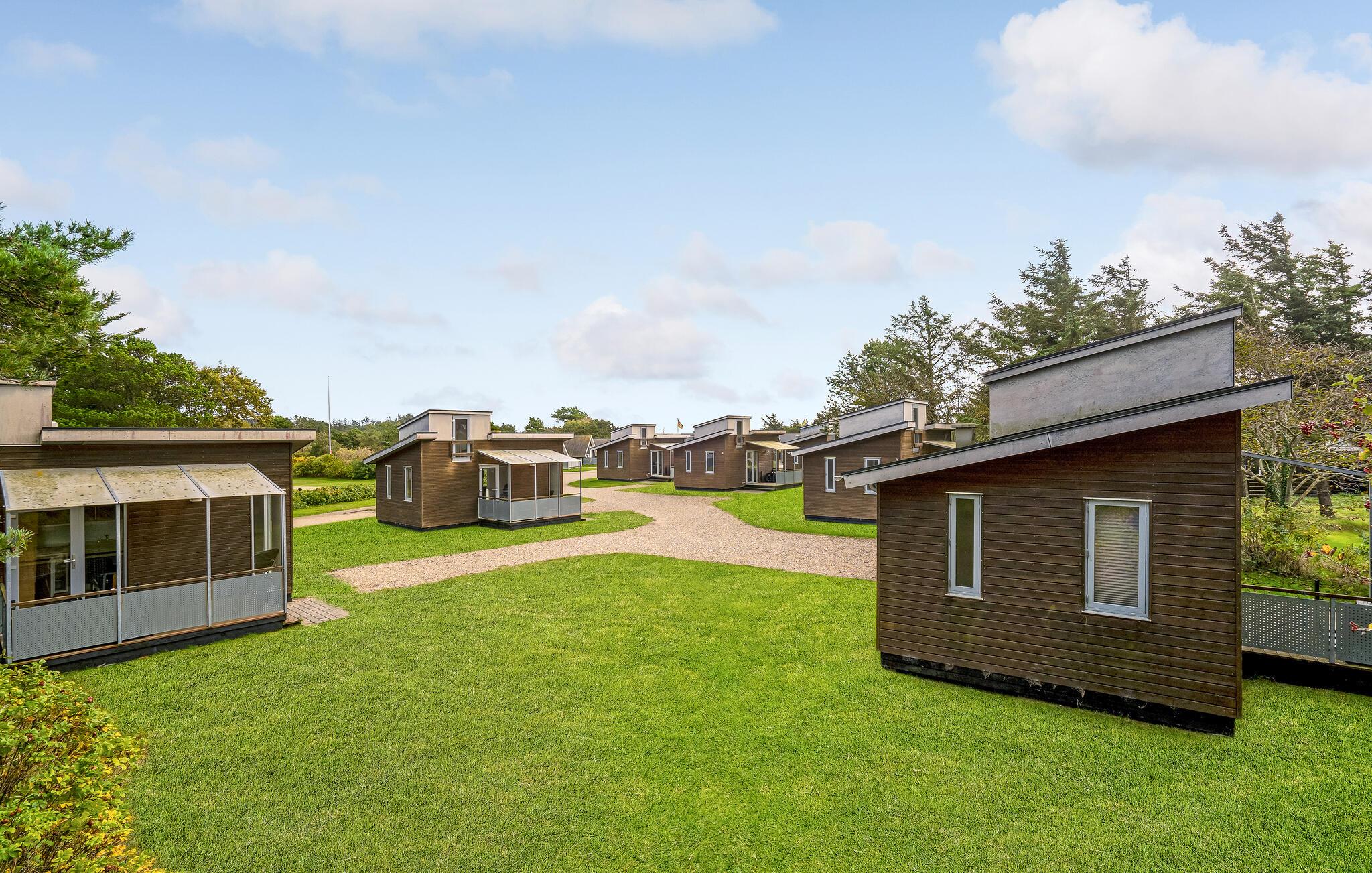 Hyggeligt sommerhus på Krik Vig campingplads med terrasse, tæt på strand og aktiviteter for hele familien.
