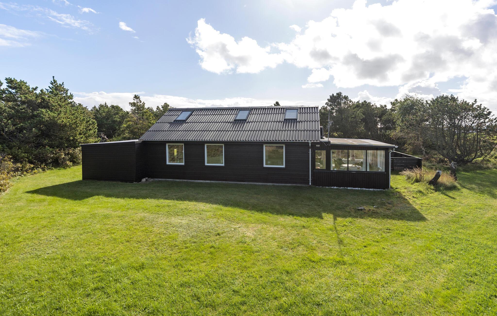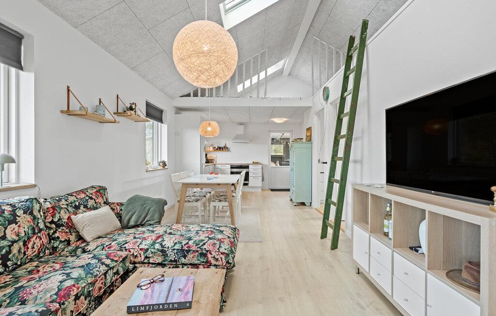 Charmerende sommerhus nær Limfjorden og Vesterhavet med store vinduer og hyggelige kroge.