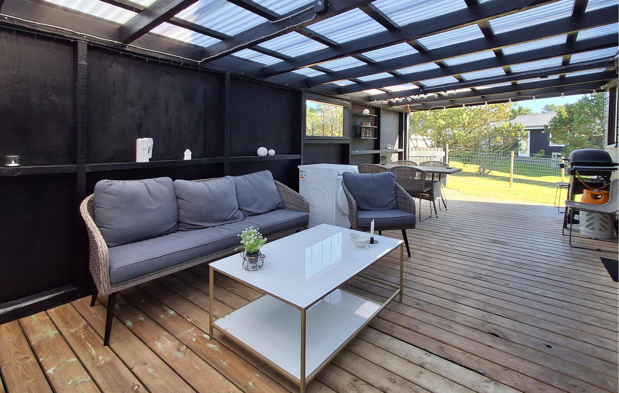 I kan se frem til meget fredfyldte dage i dette skønne sommerhus. Her kommer hele familien ned i tempo og kan koncentrere sig om at holde fri. Huset er lyst og rummeligt med store vinduesfronter ud mod haven og har et væld af hyggekroge. Find sammen i sofaerne og hyg jer med et brætspil, når I vender hjem fra jeres udflugter.