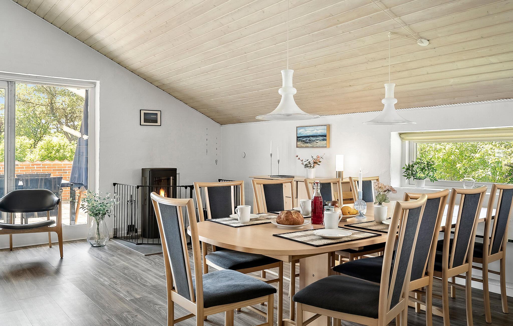Med plads og komfort inviterer dette smukke sommerhus nær kysten jer til at tilbringe uforglemmelige øjeblikke. Tilbring en afslappende pause med jeres udvidede familie eller venner, og nyd tiden sammen i denne indbydende atmosfære. Tilbered lækre fiskeretter i det fuldt udstyrede køkken og afslut aftenen komfortabelt ved den knitrende brændeovn.