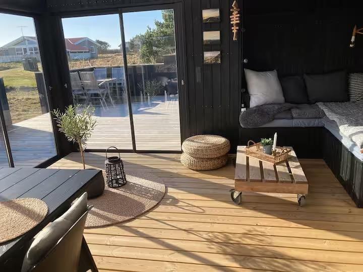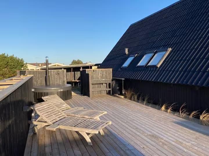 Det udendørs liv får optimale betingelser her på Spovevej 11. Med flere store terrassearealer, både åbne og delvist overdækkede, kan du altid finde en plet i solen – eller i læ, hvis vinden skulle tage til. Den hyggelige udestue forlænger sæsonen og fungerer perfekt som et ekstra opholdsrum, hvor du kan læse en bog, mens regnen stille trommer mod taget. Udenfor er der lagt op til ægte ferienydelse med et udekøkken, hvor du kan tilberede dagens måltider under åben himmel, og en udendørs bruser, så du kan skylle sandet af kroppen efter en dag ved stranden. Som prikken over i’et står et indbydende vildmarksbad klar til at give dig afslapning på første klasse – måske under stjernerne med et glas vin i hånden og dampen dansende i den kølige aftenluft.