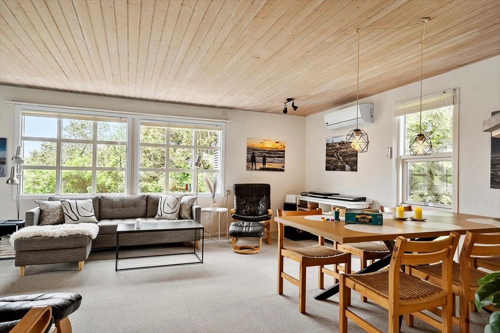 Når du træder indenfor i dette hyggelige sommerhus, mærker du straks den varme atmosfære, der inviterer til afslapning og samvær. Brændeovnens knitren skaber rammerne for hyggelige aftener, mens den moderne varmepumpe sikrer et behageligt indeklima året rundt. Indretningen er enkel, men charmerende, og her er plads til, at op til syv personer kan føle sig hjemme. Uanset om du vil lave mad i det veludstyrede køkken eller finde dig til rette med en god bog i sofaen, skaber huset de perfekte rammer for afslappende feriedage.
