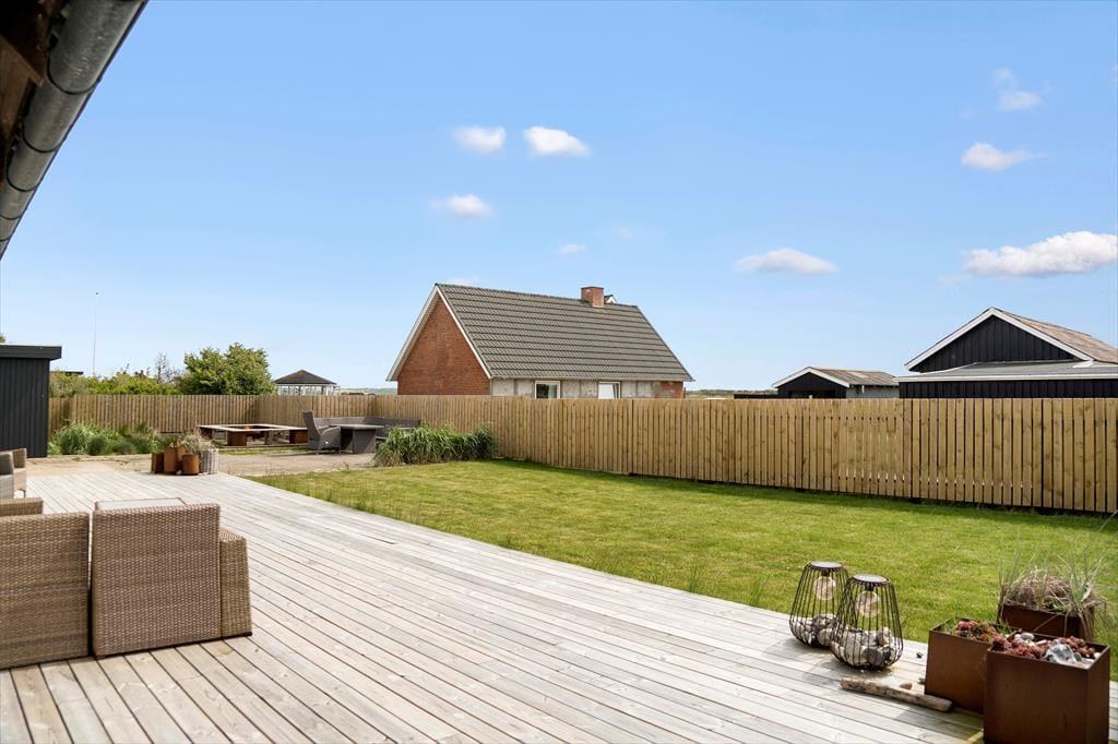 Udenfor venter en stor grund, der er som skabt til udeliv og samvær. Den rummelige terrasse indbyder til afslapning i solen, mens den hyggelige bålplads danner rammen om lune aftener med snobrød og skumfiduser under stjernehimlen. Børnene kan løbe rundt og lege på græsplænen, mens de voksne nyder en kop kaffe i ro og mag. Områdets natur er lige uden for døren, så du kan forvente en ferie, hvor du kommer helt tæt på Vesterhavets friske brise og den unikke atmosfære, som Agger byder på.
