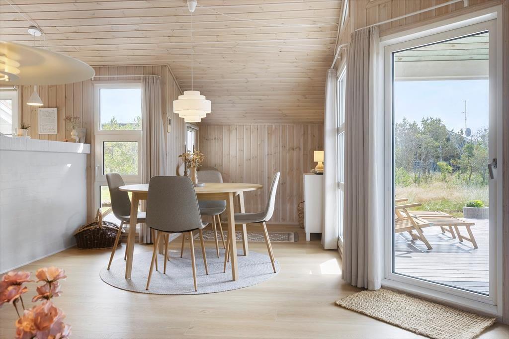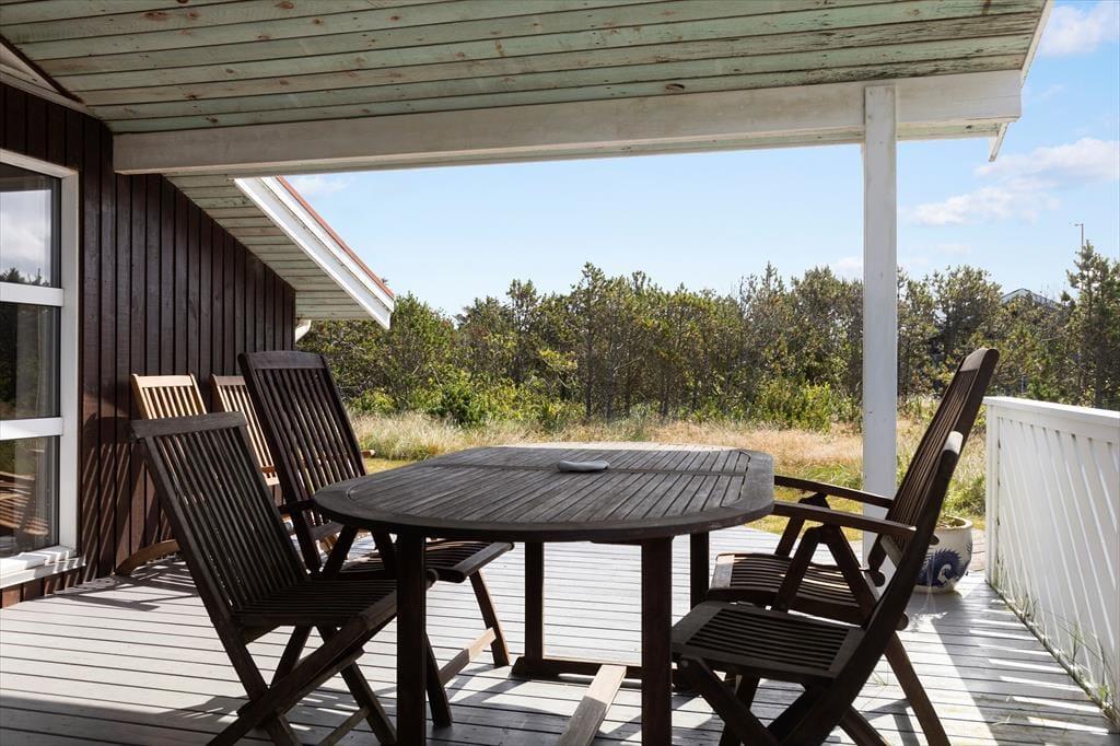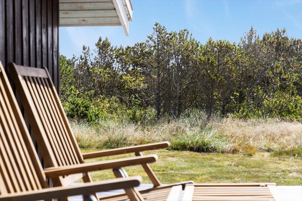 Udendørs venter der et stort terrasseområde og en velholdt have, som indbyder til både afslapning og leg. Fra husets rolige omgivelser og den nærliggende natur kan du høre fuglene kvidre, mens børnene spiller bold på græsset. Terrassen er det ideelle sted til at starte dagen med en kop kaffe eller slutte aftenen af med grillhygge. Der er terrassevarmer til de kølige aftener. Huset ligger i gåafstand til stranden, hvor du kan mærke sandet under fødderne og lytte til Vesterhavets brusen.