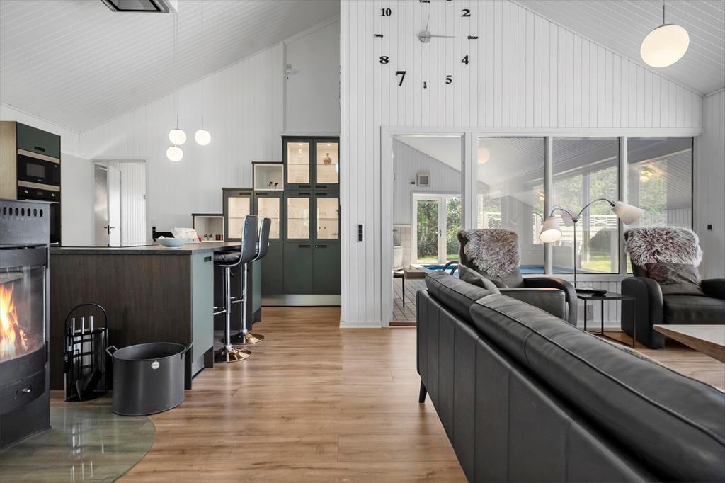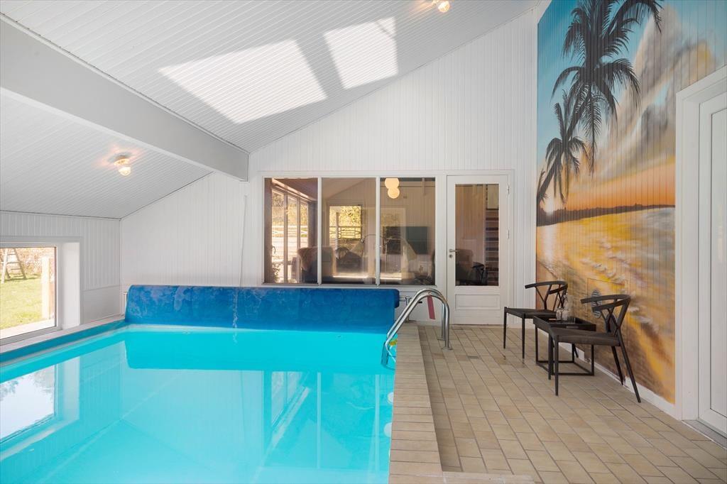 Træd indenfor i dette lyse og rummelige sommerhus, hvor moderne bekvemmeligheder og klassisk sommerhuscharme går hånd i hånd. Med en hyggelig brændeovn og en poolafdeling er der lagt op til gode stunder uanset årstiden. Forestil dig aftener foran den knitrende ild eller sjove timer i den store indendørs pool, hvor både børn og voksne kan boltre sig. Når roen sænker sig, er det tid til at nyde en afslappende stund i vildmarksbadet, der indbyder til ultimativ selvforkælelse. Sommerhusets indretning sikrer, at hele familien føler sig hjemme – fra de mindste til de største.(Pool = L 5,98 x B 3,50 x D 1,40)