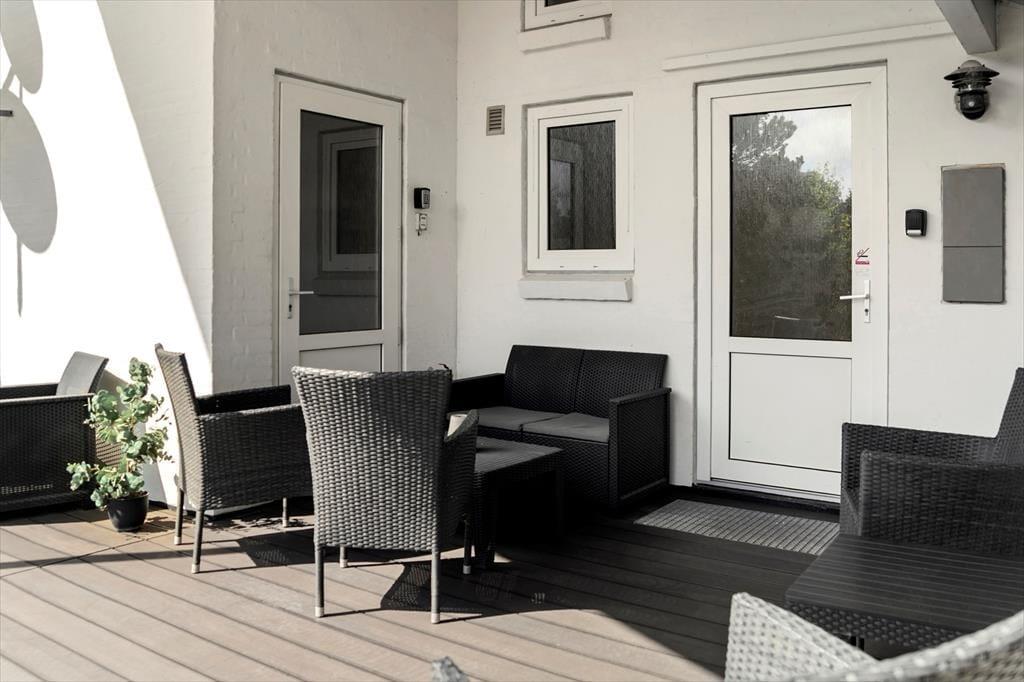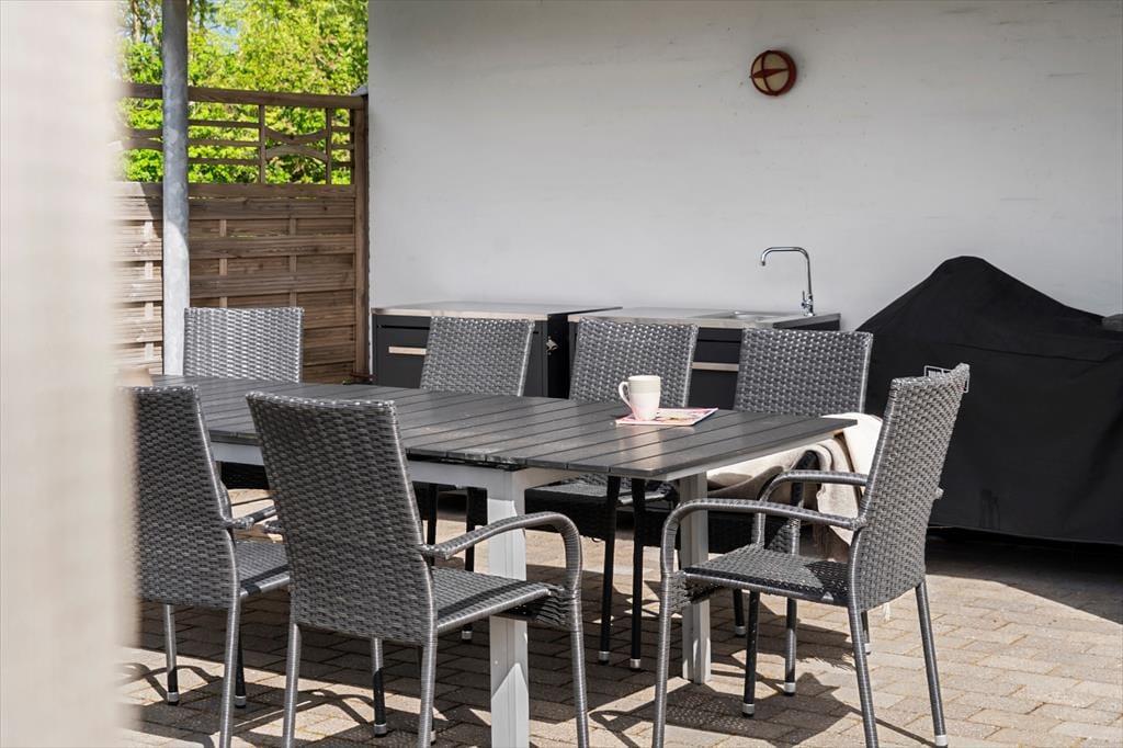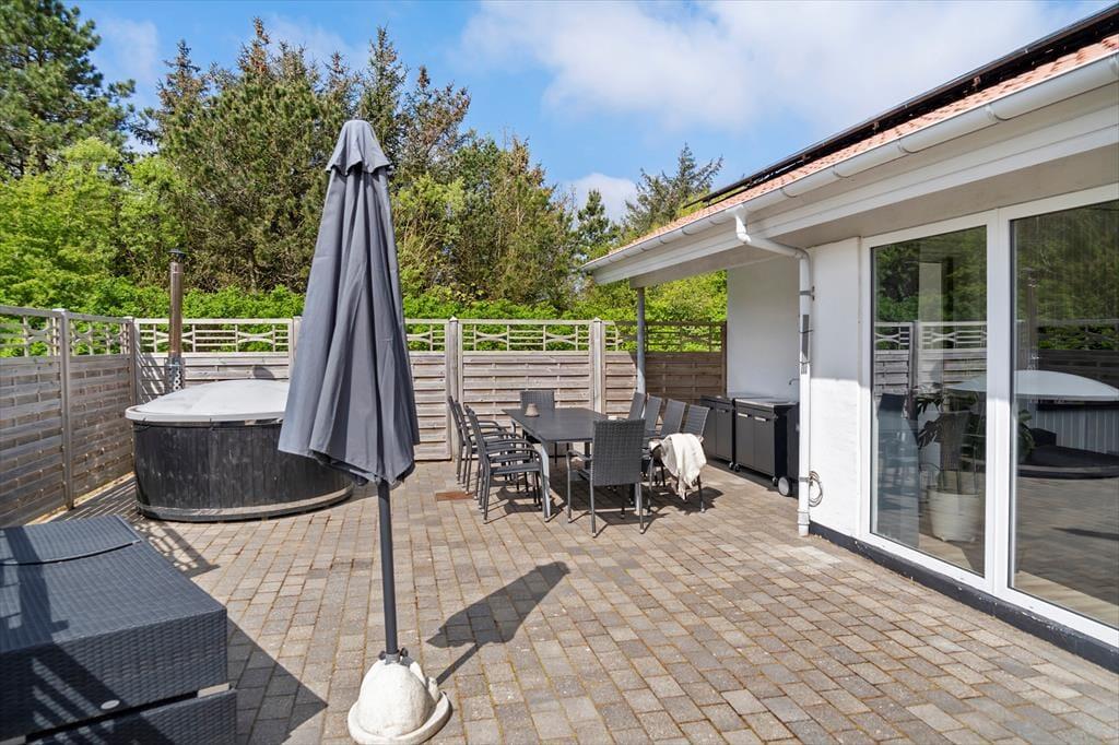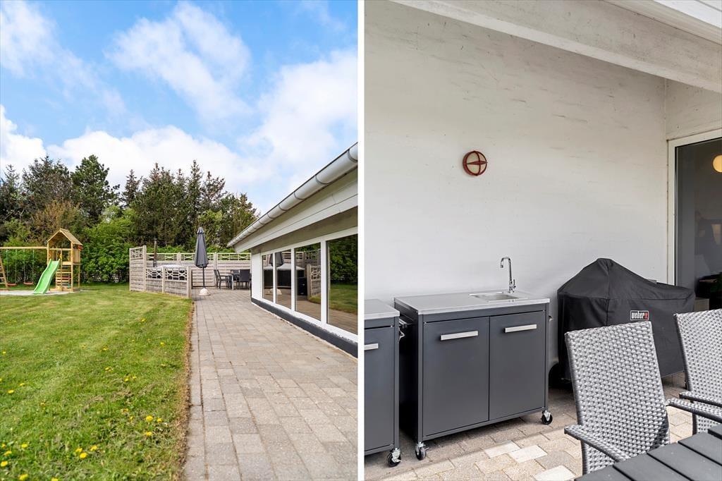Udenfor åbner sig en skøn oase med terrasseområder, hvor du kan nyde solen eller søge skygge efter behov. Den store grund indbyder til leg og udendørs aktiviteter, mens vildmarksbadet er det perfekte sted at afslutte en dejlig dag. Her kan du læne dig tilbage og nyde den klare stjernehimmel eller den friske luft fra Vesterhavet. Sommerhusets rolige beliggenhed giver mulighed for at finde fred og ro, mens lydene fra naturen skaber den perfekte baggrundsmusik til ferien.