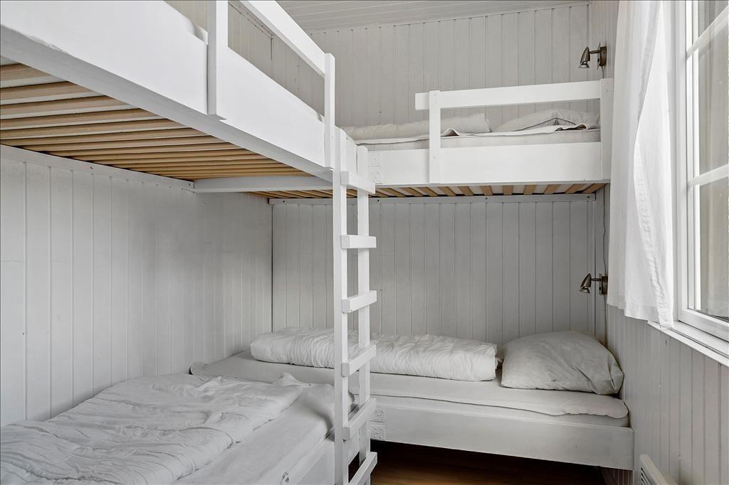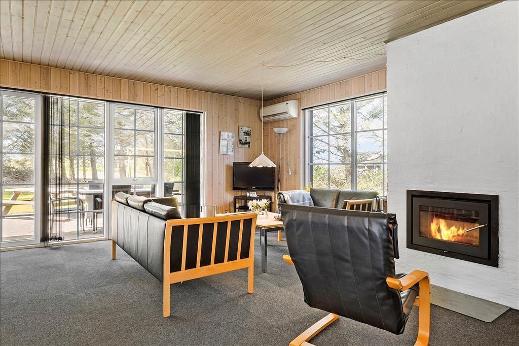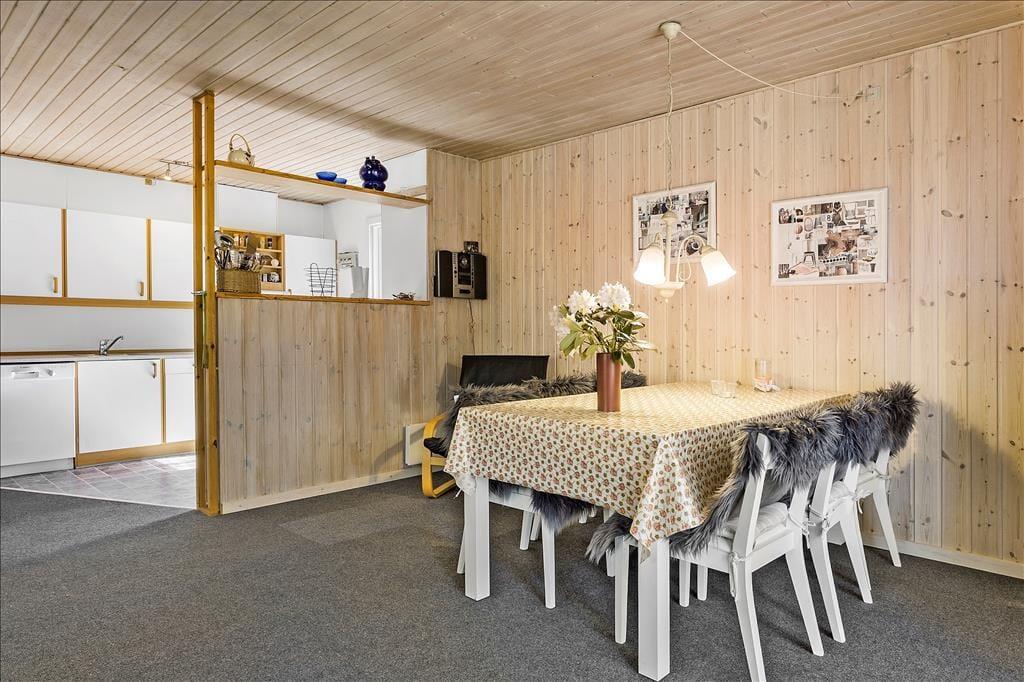 Sommerhuset på Bekkasinvej 6 byder dig velkommen med en varm og indbydende atmosfære. Indretningen emmer af hygge med fine detaljer og en rummelig stue, hvor familien kan samles foran den knitrende brændeovn på kølige aftener. Store vinduespartier lader dagslyset strømme ind og giver et smukt kig til den omkringliggende natur. Køkkenet, som ligger i åben forbindelse med stuen, er både funktionelt og hyggeligt indrettet, så måltider kan tilberedes og nydes i samvær med dine nærmeste. Her er det let at mærke, hvordan feriestemningen indfinder sig, mens du læner dig tilbage og nyder roen.