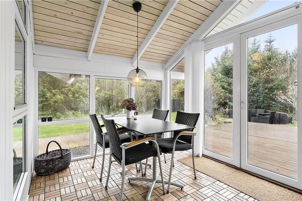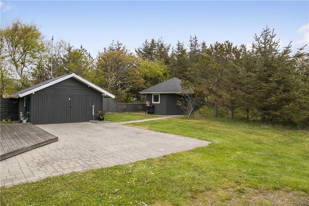 Sommerhuset ligger på en fredelig grund, hvor du kan nyde den friske havluft og fuglenes sang. Den store terrasse inviterer til afslapning, hvad enten du nyder morgenkaffen i solen eller deler en lækker grillaften med familien. Her er også plads til, at børn og kæledyr kan boltre sig frit på den omkringliggende græsplæne, mens de voksne nyder roen. Den smukke natur lige udenfor døren giver inspiration til vandreture, leg og måske endda en picnic i det fri.