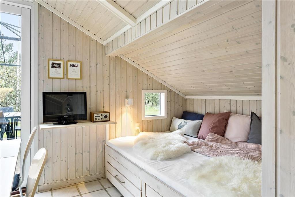Træd indenfor i dette lyse og indbydende sommerhus, hvor hyggen straks omfavner dig. Den åbne og funktionelle indretning skaber de perfekte rammer for samvær og afslapning, mens brændeovnens bløde varme gør aftenerne ekstra hyggelige – især på de kølige dage. Uanset om du samler familien til en god film, eller du fordyber dig i en bog, er stemningen sat til ren afslapning. Huset byder på plads til 6 personer, hvilket gør det ideelt til både familier og venner, der ønsker en uforglemmelig ferie sammen.