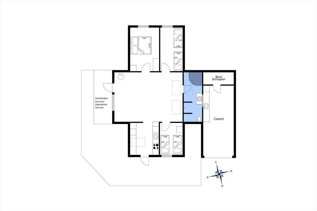 Når du træder indenfor i sommerhuset, mødes du af en varm og hyggelig atmosfære, der straks får dig til at føle dig hjemme. Den velindrettede stue med komfortable møbler indbyder til afslapning, uanset om du nyder en god bog, spiller brætspil med familien eller bare lader brændeovnens flammer kaste et hyggeligt skær over aftenen. Køkkenet ligger i åben forbindelse med stuen, så du kan tilberede lækre feriemåltider uden at gå glip af det gode selskab. Huset har plads til op til seks personer, så der er rig mulighed for at samle familien eller tage på ferie med vennerne.