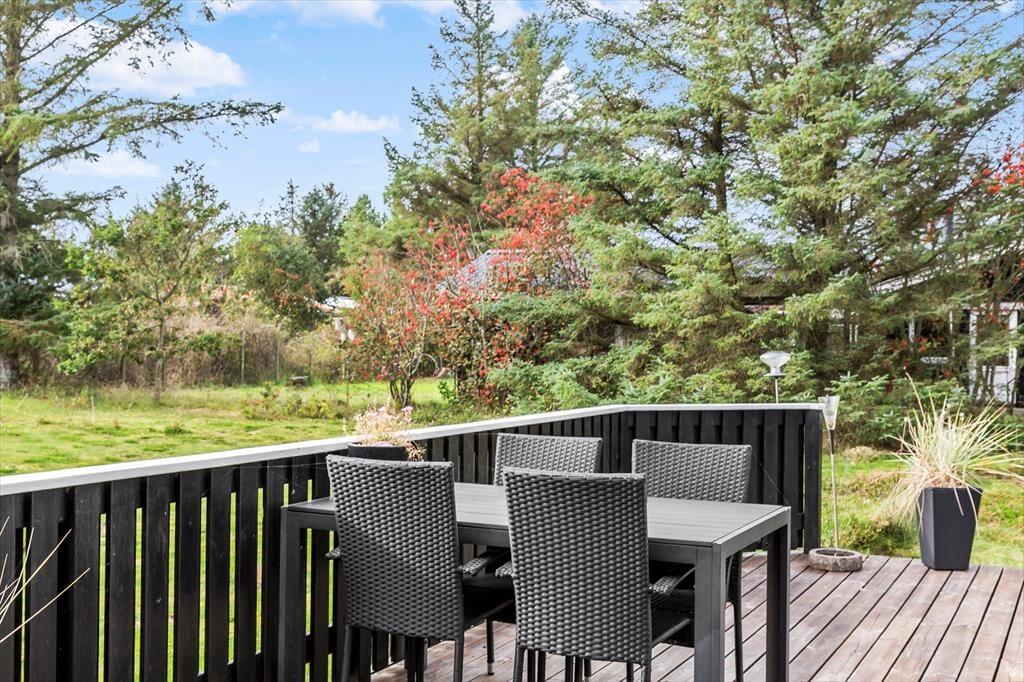 Udendørs venter et hyggeligt terrasseområde, hvor I kan starte dagen med morgenkaffe i solen eller nyde en grillaften i de lune sommeraftener. Her kan I virkelig mærke den særlige ro, som Agger tilbyder – med lyden af fuglefløjt og den friske luft fra havet. Haven er overskuelig og indbyder til små udendørsaktiviteter eller ren afslapning med en god bog i solen. Her kan I trække jer tilbage og bare nyde feriens langsomme tempo.